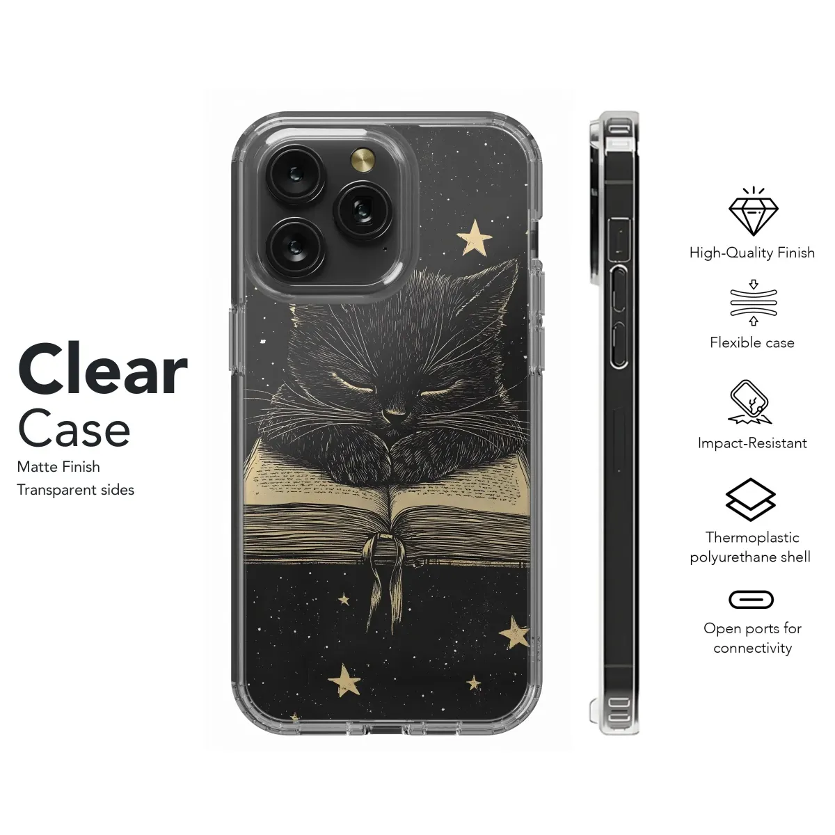 Reach for the stars with the Cosmic Cat Reader Phone Case! This purrfectly unique design featuring a celestial feline engrossed in a good book is available for iPhone, Samsung, and Pixel models. Get yours now and protect your phone with a touch of cosmic charm!