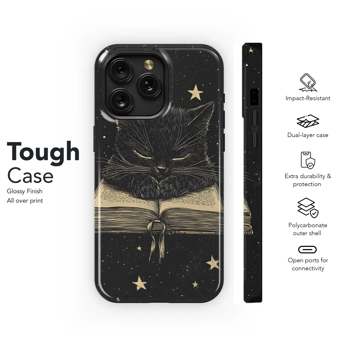 Reach for the stars with the Cosmic Cat Reader Phone Case! This purrfectly unique design featuring a celestial feline engrossed in a good book is available for iPhone, Samsung, and Pixel models. Get yours now and protect your phone with a touch of cosmic charm!