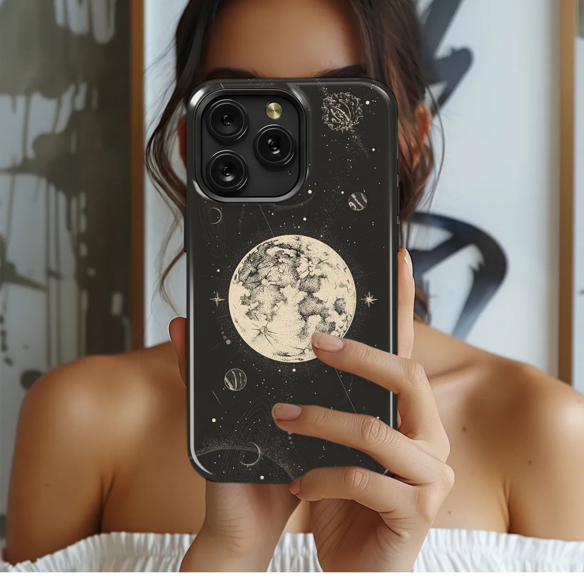 Embrace the cosmos with our captivating Cosmic Celestial Design phone case. This ethereal accessory features intricate celestial patterns that transport you to a realm of stars and galaxies. Its sleek design seamlessly protects your device, while its vibrant hues add an otherworldly touch to your everyday style.