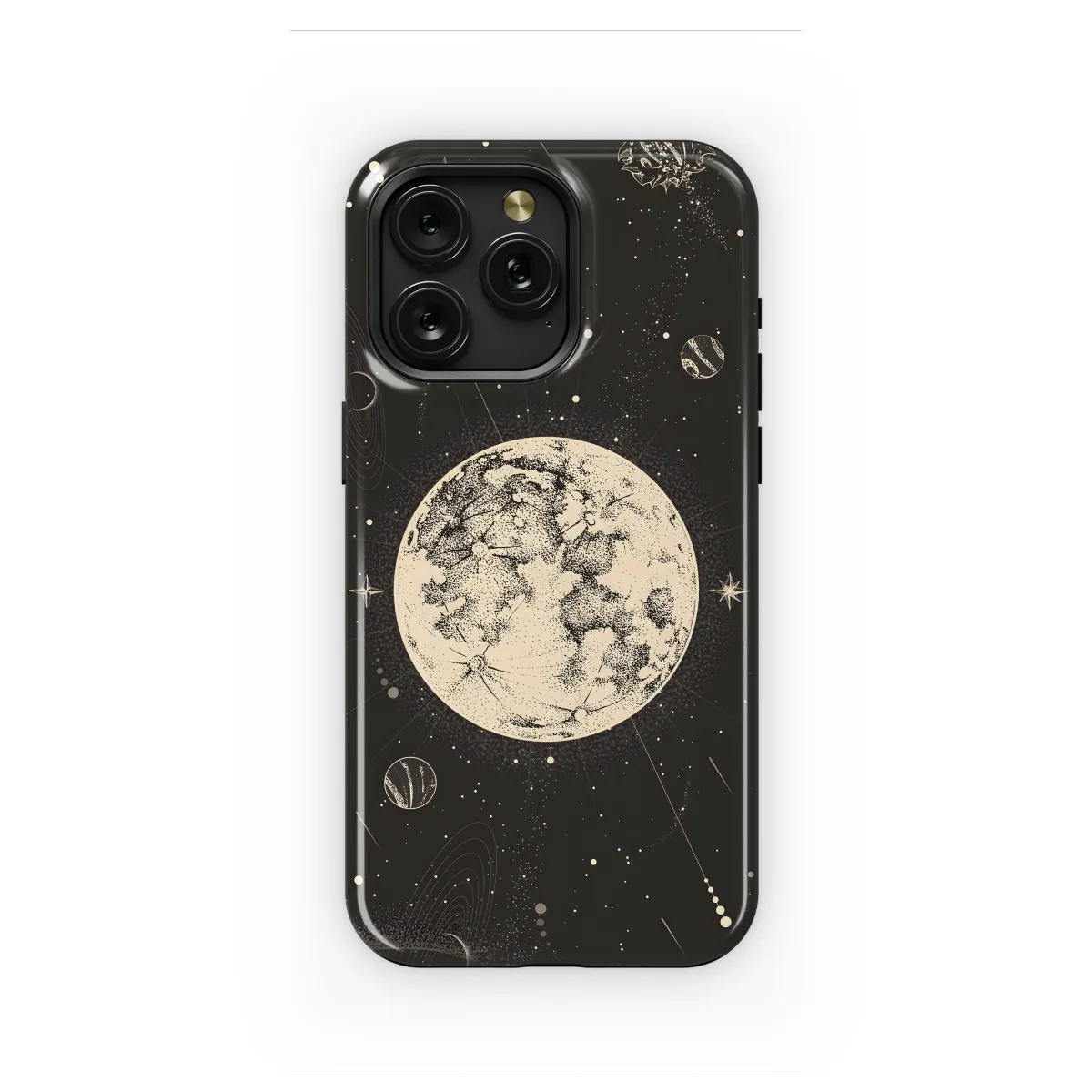 Embrace the cosmos with our captivating Cosmic Celestial Design phone case. This ethereal accessory features intricate celestial patterns that transport you to a realm of stars and galaxies. Its sleek design seamlessly protects your device, while its vibrant hues add an otherworldly touch to your everyday style.
