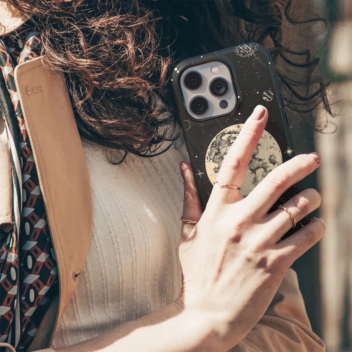 Embrace the cosmos with our captivating Cosmic Celestial Design phone case. This ethereal accessory features intricate celestial patterns that transport you to a realm of stars and galaxies. Its sleek design seamlessly protects your device, while its vibrant hues add an otherworldly touch to your everyday style.