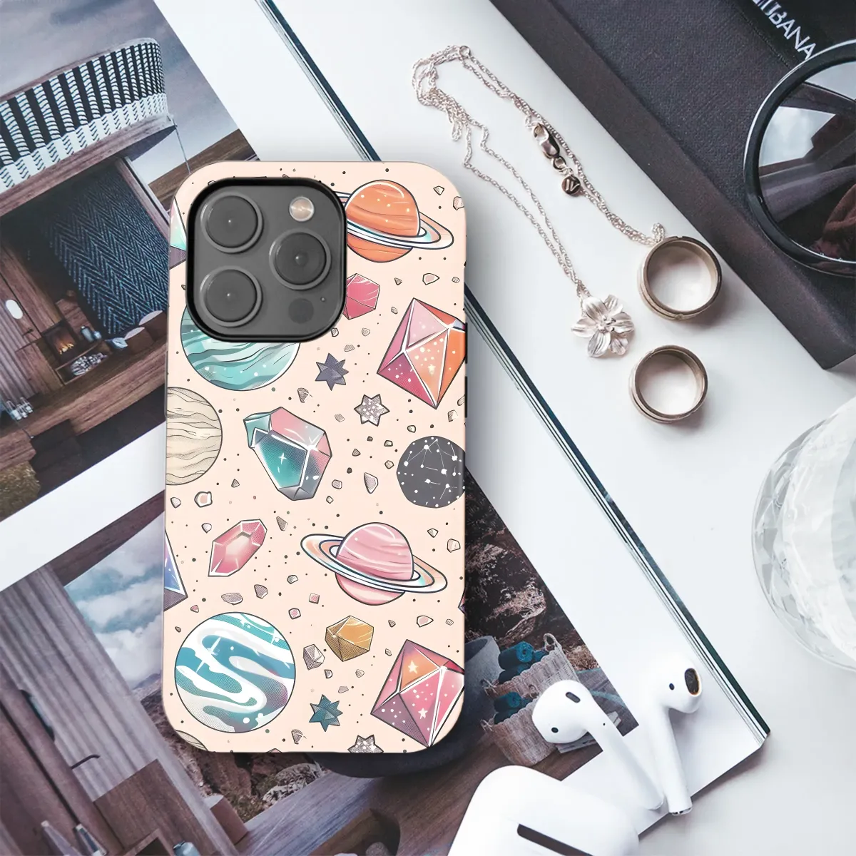 Add a celestial touch to your everyday life with this captivating design featuring vibrant planets and sparkling crystals. This mystical artwork, bursting with cosmic energy and otherworldly charm, is printed on a high-quality, durable material designed for long-lasting use. The soft, pastel color palette creates a dreamy aesthetic perfect for adding a touch of whimsy and magic to your personal style. This unique and eye-catching design is a conversation starter, showcasing your love for all things celestial and mystical. Express your individuality with this stellar accessory, a beautiful blend of science and fantasy that’s sure to turn heads. The intricate details and vibrant colors are brought to life with high-definition printing, ensuring a flawless and long-lasting finish. Showcase your cosmic style with this stunning piece that transcends trends and speaks to your inner stardust. This is more than just an accessory; it's a statement.