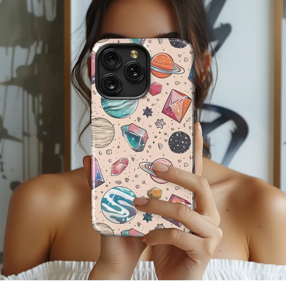 Add a celestial touch to your everyday life with this captivating design featuring vibrant planets and sparkling crystals. This mystical artwork, bursting with cosmic energy and otherworldly charm, is printed on a high-quality, durable material designed for long-lasting use. The soft, pastel color palette creates a dreamy aesthetic perfect for adding a touch of whimsy and magic to your personal style. This unique and eye-catching design is a conversation starter, showcasing your love for all things celestial and mystical. Express your individuality with this stellar accessory, a beautiful blend of science and fantasy that’s sure to turn heads. The intricate details and vibrant colors are brought to life with high-definition printing, ensuring a flawless and long-lasting finish. Showcase your cosmic style with this stunning piece that transcends trends and speaks to your inner stardust. This is more than just an accessory; it's a statement.