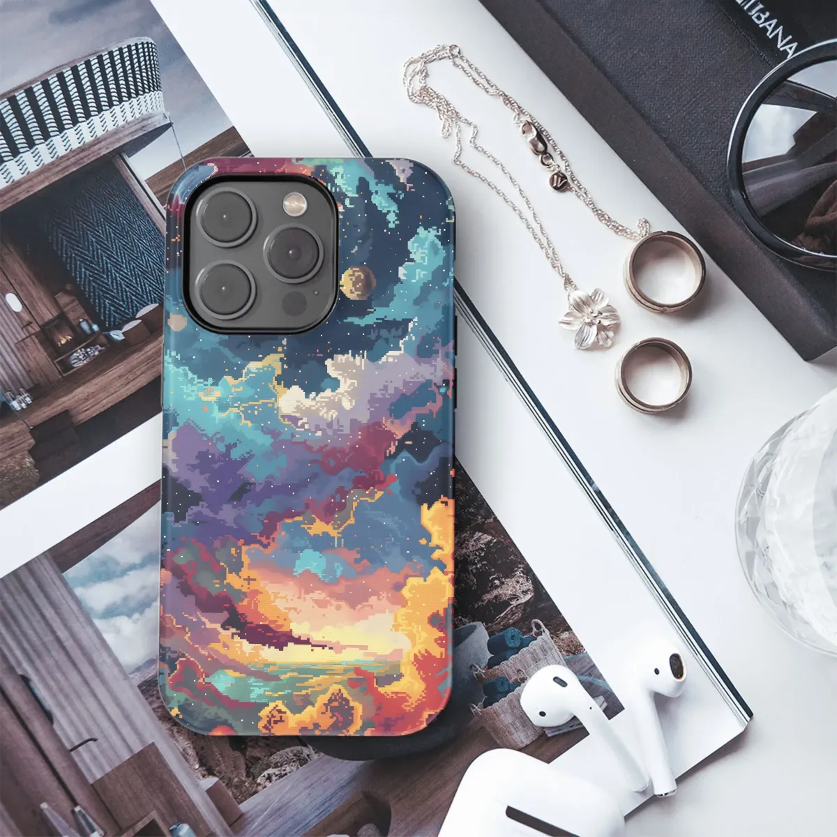 Witness the grandeur of a cosmic pixel sunset with our enchanting phone case. Hues of twilight blend seamlessly into a digital masterpiece, adorning your device with a mesmerizing and ethereal appeal. Every pixel captures the mesmerizing dance of light and shadow, painting a breathtaking celestial tapestry on your phone. Embrace the cosmic wonder and let your phone radiate the beauty of the heavens.