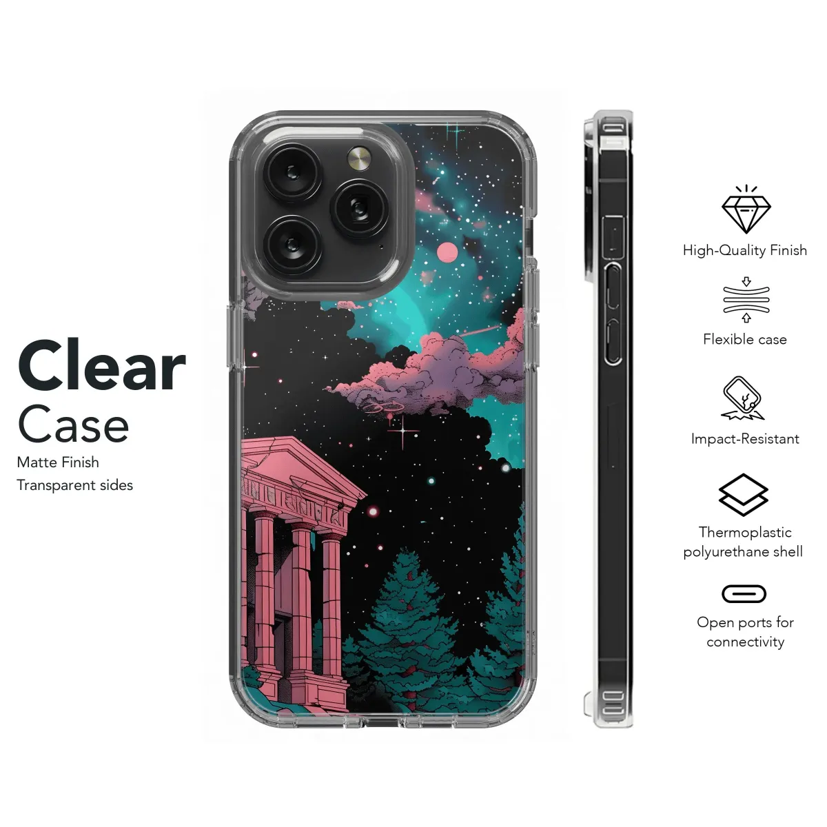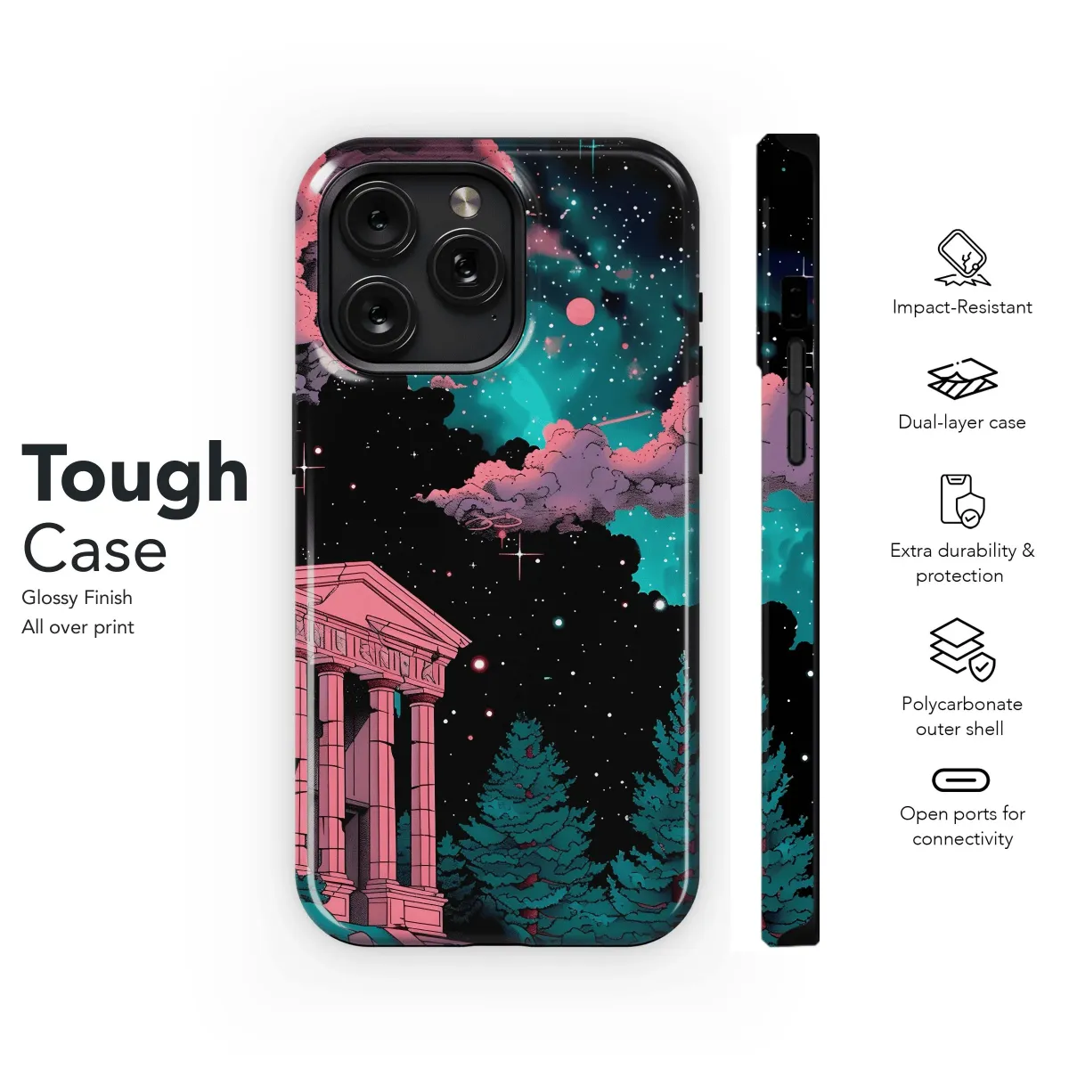 Protect your phone with cosmic vibes. This case features mesmerizing temple ruins, available for iPhone, Samsung, and Pixel models. Durable protection with a unique, otherworldly design.