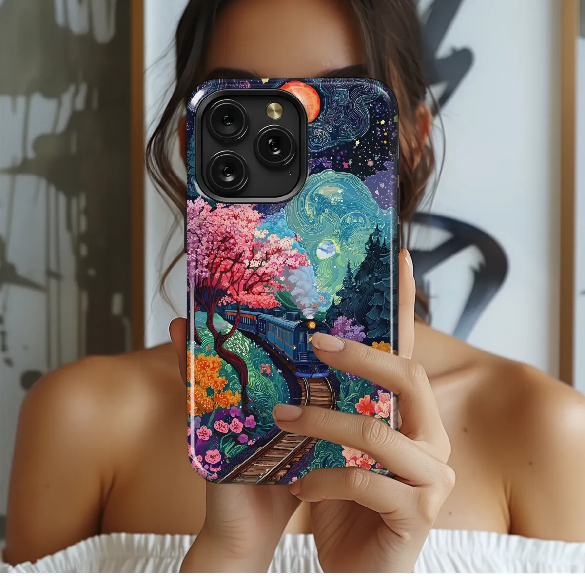 Embrace your whimsical side with this vibrant, dreamlike design featuring a train journeying through a fantastical landscape. Blooming cherry blossoms and a swirling cosmos create a captivating backdrop for this enchanting artwork, perfect for adding a touch of magic to your everyday life. The detailed illustration boasts a rich palette of jewel tones and intricate linework, capturing the essence of wonder and adventure. This design is printed using high-quality, vibrant inks on durable materials ensuring long-lasting beauty and a stunning visual impact. Its unique artistry makes it a conversation starter, reflecting a personality that's both creative and bold. This artistic piece transforms any device into a personal expression of individuality and style, making it a truly one-of-a-kind accessory. Show off your unique sense of wonder with this captivating design – it’s more than just an accessory; it's a journey for your imagination. This magical artwork is sure to be a cherished addition to your collection, capturing the beauty of nature and the allure of the unknown. Transform your device into a canvas of artistic expression and let your creativity shine.