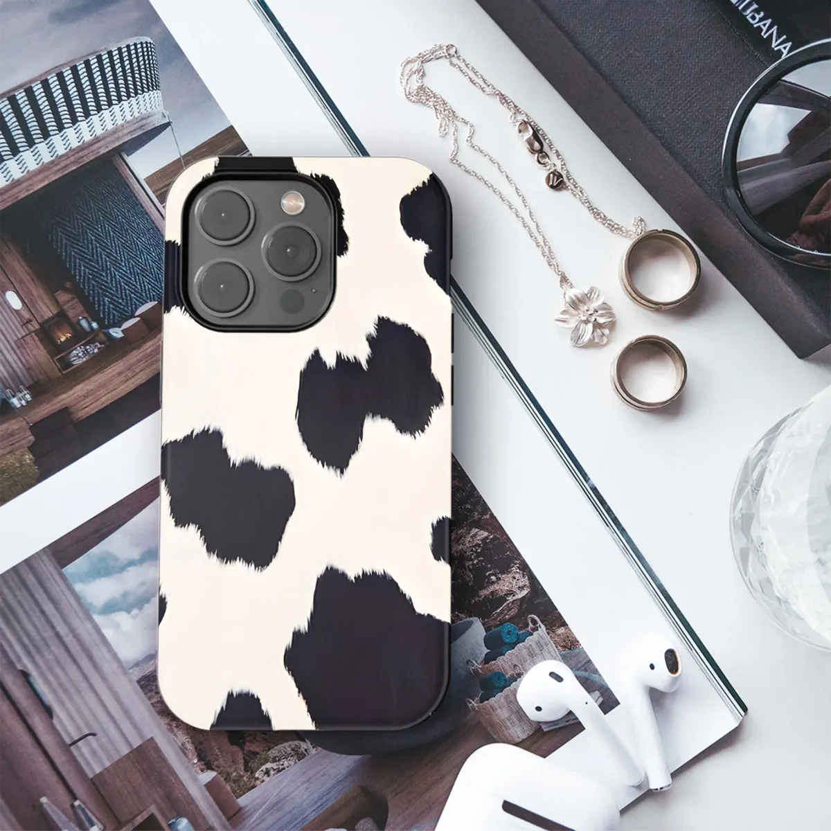 Embrace your wild side with this striking black and white spotted design, perfect for adding a touch of rustic charm to your everyday essentials. This bold, cow-inspired pattern brings a fun, playful element to any accessory, making a statement without saying a word. Ideal for those who love animal prints, farm-fresh aesthetics, or simply want to stand out from the crowd. This distinctive pattern offers a unique way to express your individuality and add a touch of the countryside to your urban lifestyle. Let this eye-catching design become your new go-to statement piece, perfect for expressing your unique style and love for all things quirky and chic. Consider this classic pattern for a touch of country flair. Shop now and add a splash of bold sophistication to your belongings with this timeless black and white design! A great option for those who like a touch of western style. It is a unique accessory for anyone seeking something different and attention-grabbing.