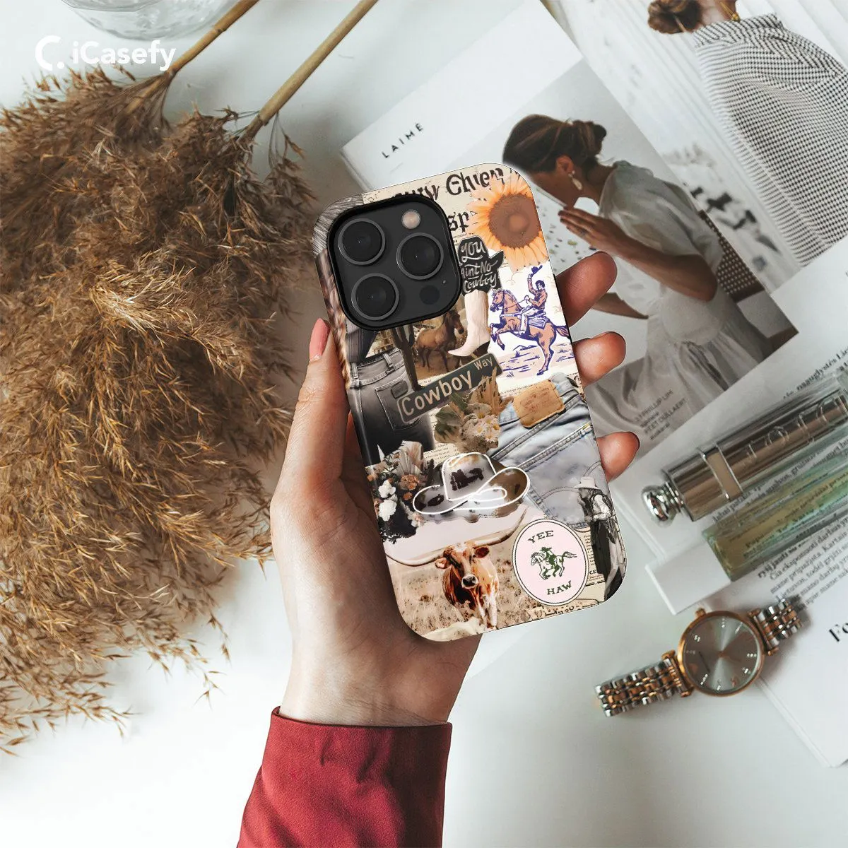 Embrace the spirit of the Wild West with our Cowboy Collage phone case. This design showcases a collage of iconic cowboy imagery against a backdrop of rugged landscapes, paying homage to the rich heritage of the American frontier. Crafted for country enthusiasts, it offers both style and protection, featuring precise cutouts for easy access to ports. Let this accessory be a celebration of cowboy culture and the enduring legacy of the West.