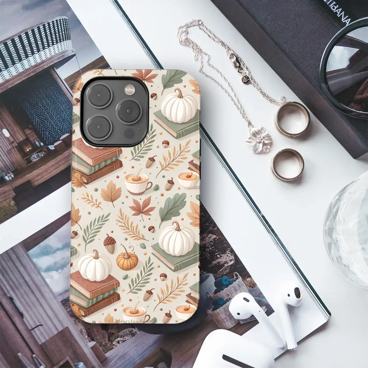 Embrace the cozy season with this charming autumn phone case, featuring a warm pattern of pumpkins, books, and fall leaves. A perfect accessory for any book lover looking to add a touch of fall coziness to their daily routine. Inspired by crisp afternoons spent reading with a warm drink, this design captures the whimsical and comforting spirit of autumn. The illustrated pattern is perfect for students, teachers, librarians, and anyone who feels most at home surrounded by books and pumpkin spice. Key Features: • Durable polycarbonate outer shell • Vibrant, high-resolution UV printed design • Slim, lightweight profile for easy handling • Clear, open ports for seamless connectivity • Available for most iPhone, Samsung Galaxy, and Google Pixel models To care for your case, simply wipe it clean with a soft, damp cloth. Avoid harsh chemicals to preserve the life of the print.