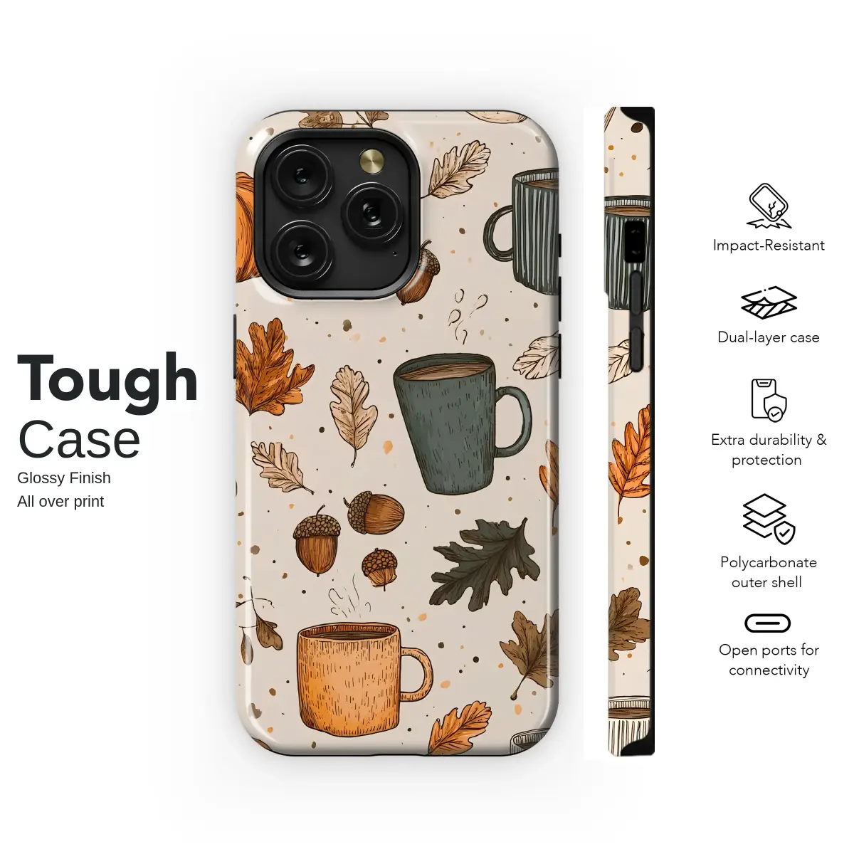 Embrace the warmth of the season with this charming, hand-drawn autumn pattern. The design features a delightful mix of fall favorites, including rustic pumpkins, detailed acorns, scattered oak leaves, and steaming mugs of coffee. Its sketchy, illustrative style and warm, earthy color palette evoke a comforting and cozy feeling, perfect for anyone who loves the fall season.