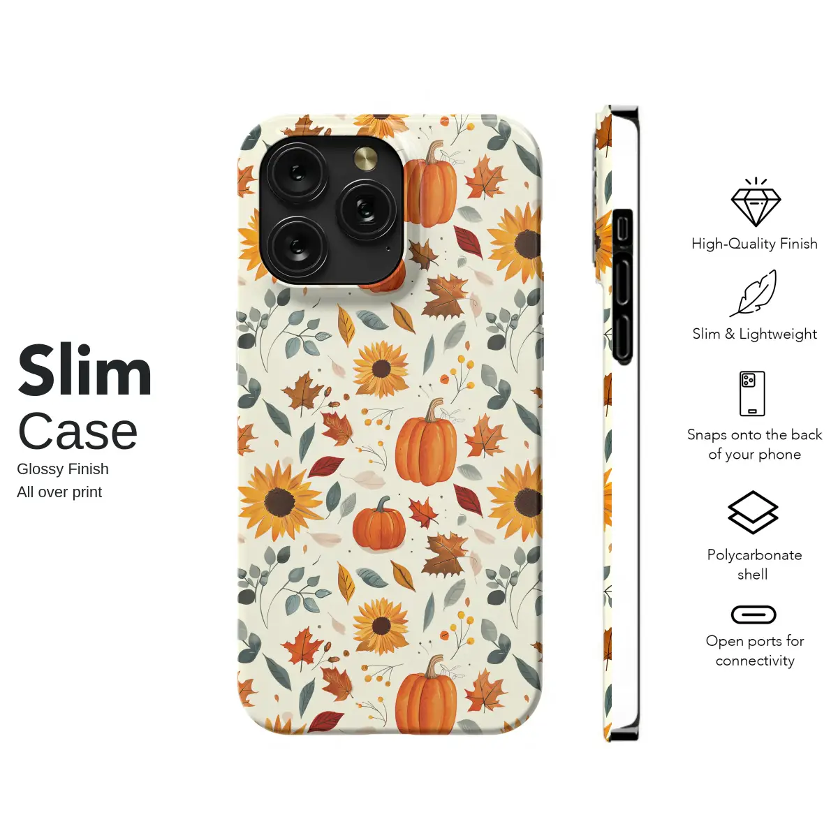 Embrace the enchanting spirit of autumn and carry a piece of the harvest season with you wherever you go. This beautiful design captures the heart of fall in a stunning, hand-painted watercolor style. Imagine the crisp air of a golden afternoon as you wander through a field dotted with plump, cheerful pumpkins and radiant, sun-kissed sunflowers. Delicate maple leaves, in rich shades of amber, rust, and crimson, appear to dance and twirl alongside muted green foliage and subtle berry sprigs, all set against a soft, creamy background. This artwork isn't just a pattern; it’s a feeling—the warmth of a cozy sweater, the scent of pumpkin spice, and the gentle rustle of leaves underfoot. Perfect for anyone who adores the rustic charm of cottagecore aesthetics and the vibrant, comforting palette of fall. Let this botanical illustration adorn your daily essentials, bringing a touch of seasonal magic and artistic elegance to your personal style. It’s an ideal way to celebrate your love for the coziest time of year, making every day feel like a perfect autumn day.