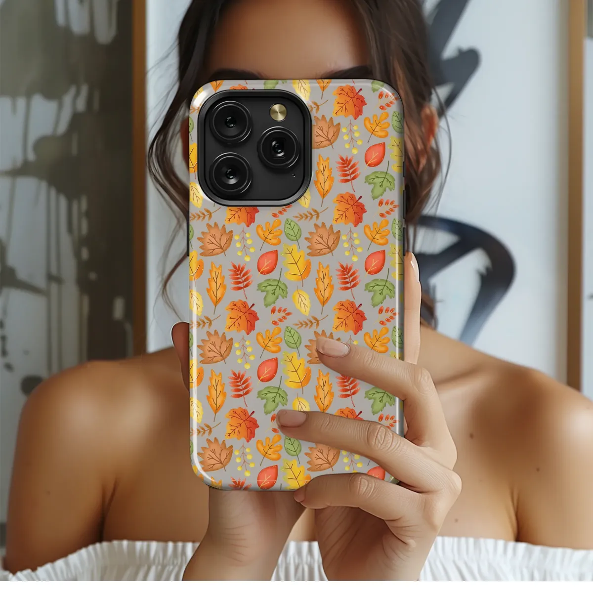Embrace the enchanting spirit of the season and wrap your everyday essential in the warm, cozy hug of autumn. This stunning design captures the gentle dance of falling leaves, creating a vibrant tapestry of nature's finest hues against a sophisticated, neutral grey background. Each leaf, from fiery crimson maples to golden yellow oaks, rustic brown foliage, and even the last hints of summer green, is rendered with a delicate, watercolor-like texture that brings the artwork to life. Imagine the feeling of a crisp walk through the woods, the crunch of leaves underfoot, and the warm glow of a harvest sunset—this pattern is a visual ode to those cherished fall moments. It's more than just a design; it’s a tiny piece of cottagecore charm, a daily reminder of pumpkin spice lattes and the magic of the changing seasons. Perfect for anyone who wishes autumn could last forever, this whimsical forest floor illustration adds a touch of rustic elegance and personal style to your most-used accessory. Let this beautiful autumn medley protect your device while celebrating the cozy aesthetic of Thanksgiving and the entire harvest season. Carry a piece of fall's poetry with you wherever you go, turning a simple object into a statement of your love for nature's most colorful display.