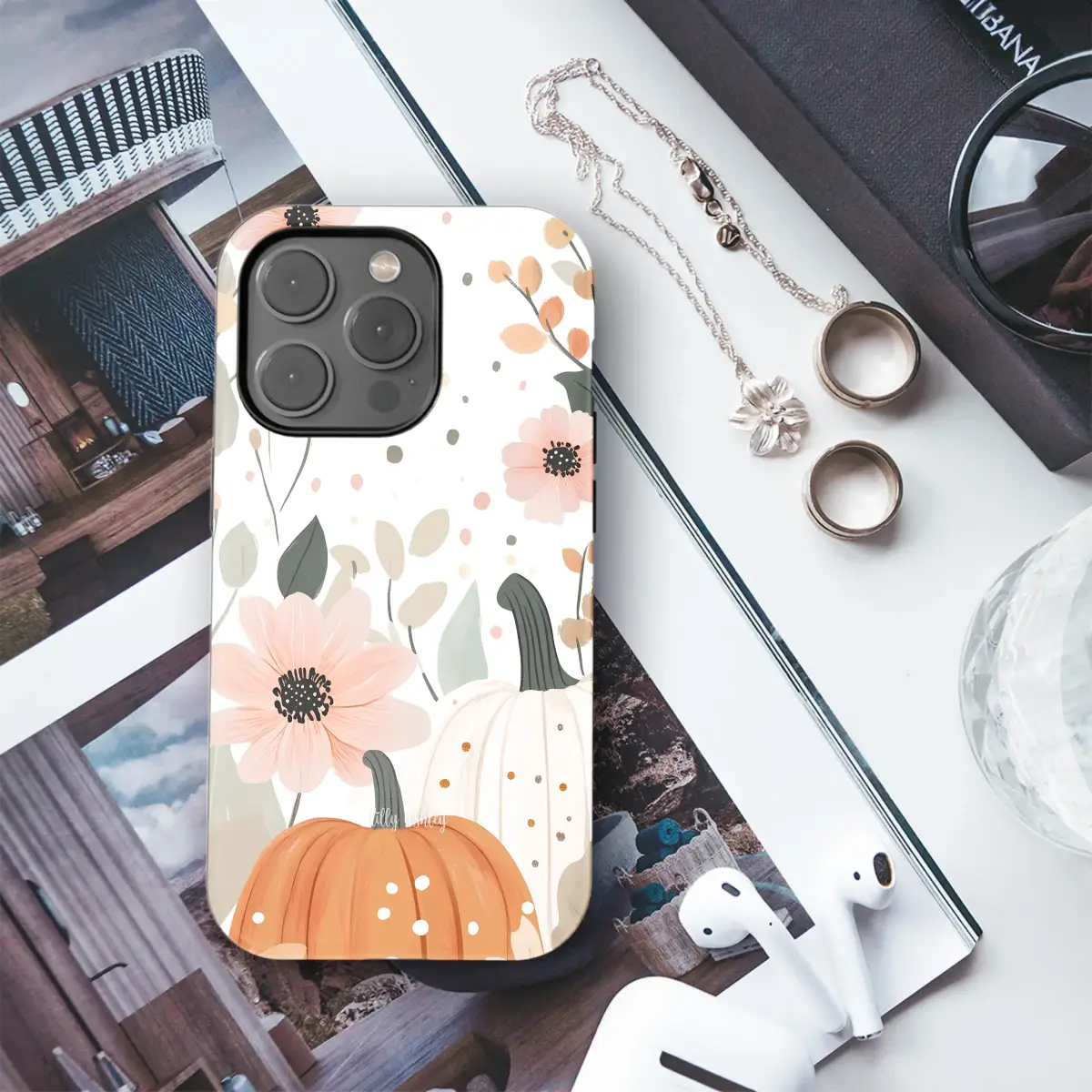 Embrace the magic of the coziest season with this enchanting botanical artwork, a dreamy escape into a whimsical autumn garden where warmth and style intertwine. Delicate blush-pink florals bloom alongside charmingly plump pumpkins, one in a classic vibrant orange and the other in a chic, creamy white, both speckled with playful, artistic dots. A lovely tapestry of sage green and muted beige leaves weaves through the design, while tiny pops of color float like gentle confetti in the crisp autumn air. The painterly style gives each element a soft, hand-illustrated feel, capturing the feeling of a chunky knit sweater, the scent of pumpkin spice, and the gentle rustle of falling leaves in a single, beautiful moment. Let this unique piece of art adorn your most-used essential, bringing a touch of personalized, cottagecore elegance to your daily routine. It's the perfect way to carry the heartwarming spirit of fall with you, a stylish companion for apple picking, hayrides, and every cozy adventure in between.