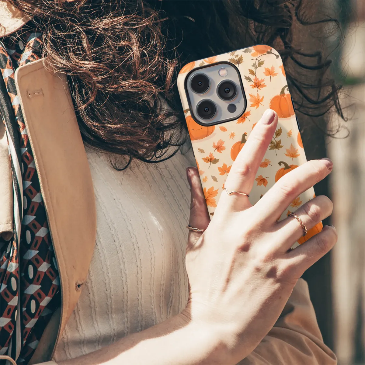 Embrace the heartwarming magic of autumn and carry a piece of the coziest season with you everywhere you go. This enchanting design is a celebration of all things fall, instantly transporting you to a sun-drenched pumpkin patch where the air is crisp and the world is painted in hues of amber and gold. Adorable, smiling pumpkins dot the landscape, each with a unique, cheerful expression that brings a touch of whimsical joy. They are nestled amongst a gentle cascade of falling leaves—delicate maple, rustic oak, and dainty ferns—creating a beautiful, repeating pattern that feels both lively and serene. The warm, inviting color palette of rustic orange, soft cream, and earthy brown captures the very essence of sweater weather and pumpkin spice everything. This artwork is more than just a pattern; it’s a feeling. It’s the nostalgic comfort of a hayride, the gentle crunch of leaves underfoot, and the warmth of a bonfire. Perfect for anyone who cherishes the fall aesthetic, this cottagecore-inspired piece adds a touch of rustic charm and seasonal cheer to your daily essentials. It’s the perfect way to personalize your style for the harvest season or to give a thoughtful gift to a fellow autumn enthusiast. Let this happy harvest design be your daily reminder of the simple, beautiful moments the season brings.