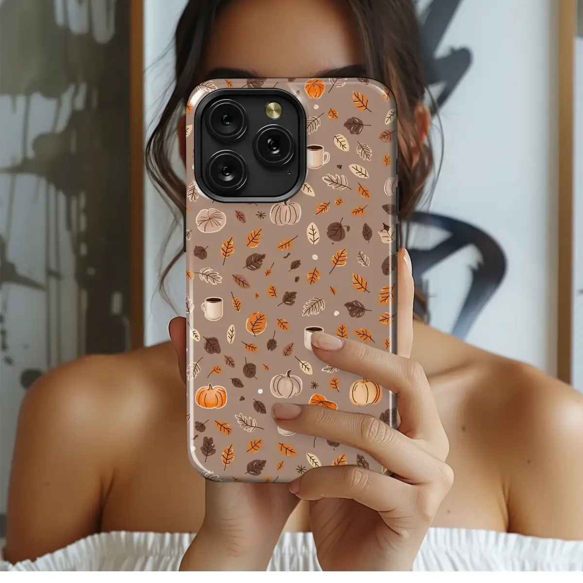Embrace the heart-warming spirit of the cozy season with this enchanting autumn aesthetic design, a beautiful tribute to all things fall. Close your eyes and imagine the crisp air of a perfect October morning, the satisfying crunch of leaves underfoot, and the comforting warmth of a spiced latte cradled in your hands. This charming fall illustration captures that magical feeling, bringing the best of autumn vibes right to your fingertips. A delightful dance of hand-drawn pumpkins, in shades of rustic orange and gentle cream, mingles with a cascade of falling leaves in rich chocolate and amber hues. Dotted sweetly among this beautiful harvest pattern are steaming mugs of fresh coffee, promising warmth and comfort on even the chilliest of days. This design is more than just a pattern; it's an emotion—a tangible piece of cottagecore magic and hygge coziness that celebrates the simple, profound joys of the season. Let this warm and cozy artwork be your daily companion, a beautiful, constant reminder of golden afternoons spent at the pumpkin patch, evenings curled up with a good book, and the serene, fleeting beauty of the changing leaves. It’s the perfect little piece of seasonal art to carry with you, adding a touch of rustic elegance and whimsical charm to your most-used everyday essentials.