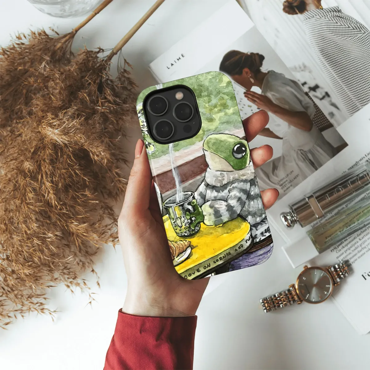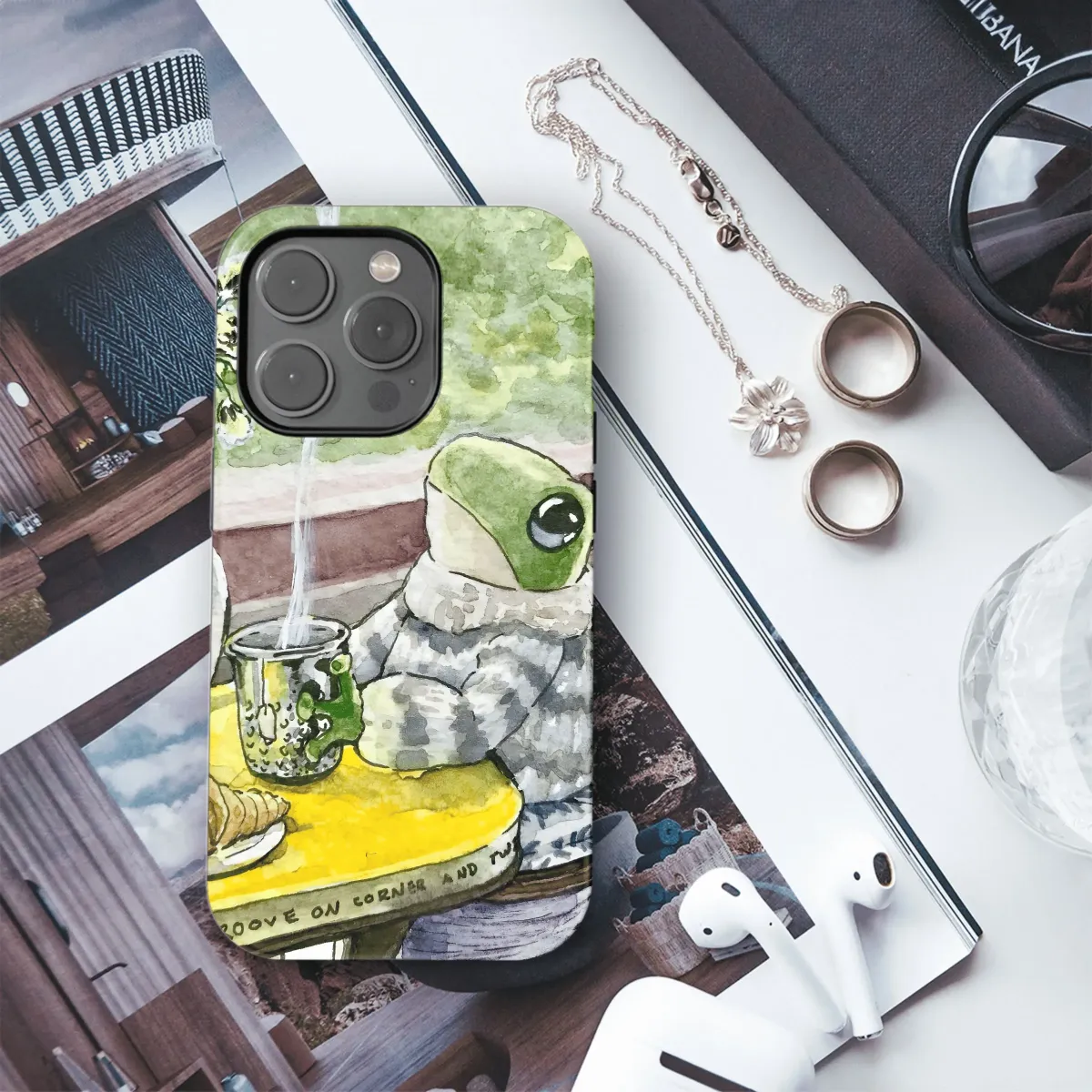 Sip in style with this adorable frog tea time phone case! Protect your iPhone, Samsung, or Pixel with this cozy and charming design (4523).