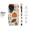 Step into a whimsical woodland where autumn's magic is in full swing. This enchanting design captures the heart of the coziest season, inviting you to wrap your essentials in its warm embrace. Imagine strolling through a moonlit pumpkin patch; that's the feeling this art evokes. Vibrant orange pumpkins pop against a creamy background, surrounded by a cascade of beautifully illustrated fall leaves. Some leaves are a stark, elegant black, dusted with mysterious golden flecks, while others glow with the rustic warmth of burnt orange. Delicate spiderwebs hint at a playful, spooky Halloween spirit, while clusters of dark berries and scattered dots add depth and texture to the seamless pattern. This isn't just an accessory; it's a piece of the season you can carry with you, a constant reminder of crisp air, crunchy leaves, and the comforting aroma of pumpkin spice. It's the perfect way to celebrate your love for all things autumn, making it an ideal aesthetic choice for the harvest season or a thoughtful gift for the fall fanatic in your life. Let this charming artwork add a touch of rustic elegance and seasonal joy to your daily adventures.