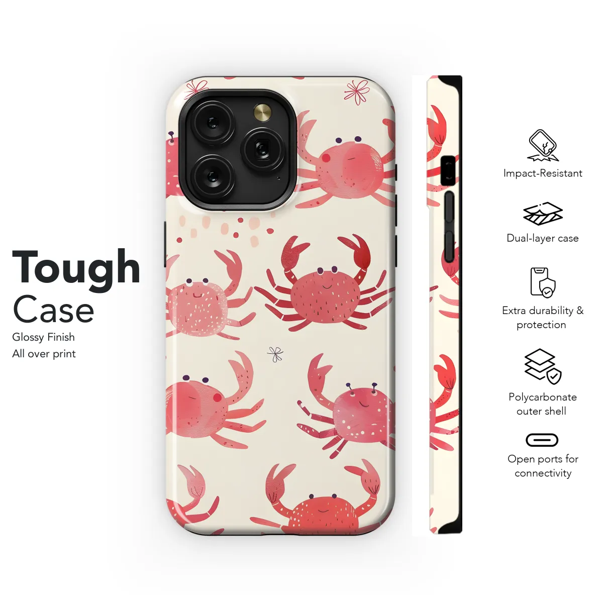 Introducing our exclusive Crabs Pattern Phone Case, the perfect way to protect your iPhone, Samsung, or Pixel smartphone in style. Adorned with a vibrant and eye-catching crabs pattern, this case will turn heads wherever you go. Its sleek and lightweight design ensures a secure and comfortable grip, while its durable construction provides reliable protection against scratches, bumps, and drops. Stand out from the crowd and embrace the marine life with our Crabs Pattern Phone Case, the ultimate combination of fashion and functionality.