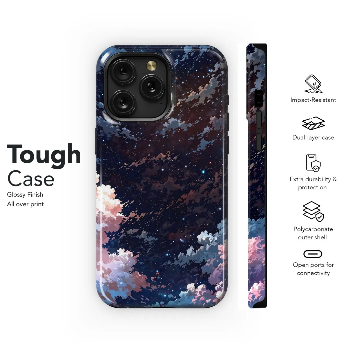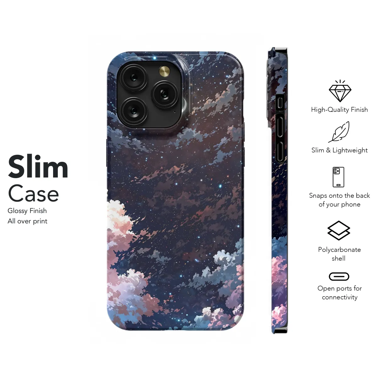Escape into a celestial reverie with our Crescent Moon Dreamscape Phone Case. This ethereal accessory transforms your device into a canvas for cosmic enchantment. Adorned with a mesmerizing image of a crescent moon shimmering amidst a starry expanse, this case evokes a sense of tranquility and wonder. The vibrant colors and intricate details create a captivating scene that will draw admiring glances. Crafted from premium materials, our phone case provides reliable protection while showcasing your unique style. Its durable construction shields your device from everyday bumps and scratches, ensuring it remains pristine and protected. Embrace the celestial magic of the Crescent Moon Dreamscape Phone Case and elevate your phone to a work of art.