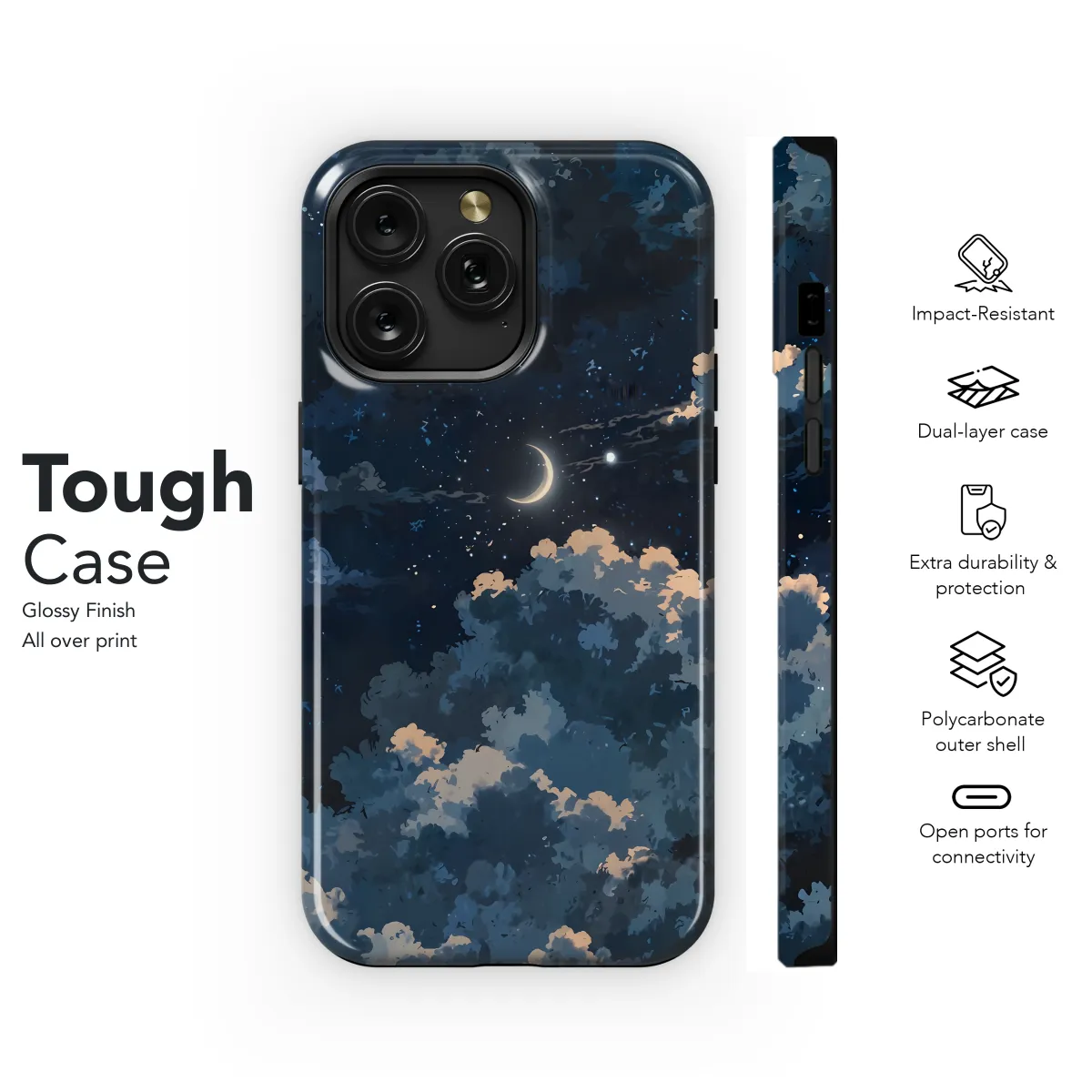 Escape into a celestial dreamscape with our enchanting Crescent Moon Night Sky Phone Case. Adorned with an ethereal night sky adorned by a crescent moon, this case transports you to a tranquil realm. The vibrant hues of the celestial bodies create a captivating contrast against the deep blue background, evoking a sense of serenity and wonder. Whether you're gazing up at the stars or capturing memories under the moonlight, this case will remind you of the boundless mysteries and beauty of the cosmos.