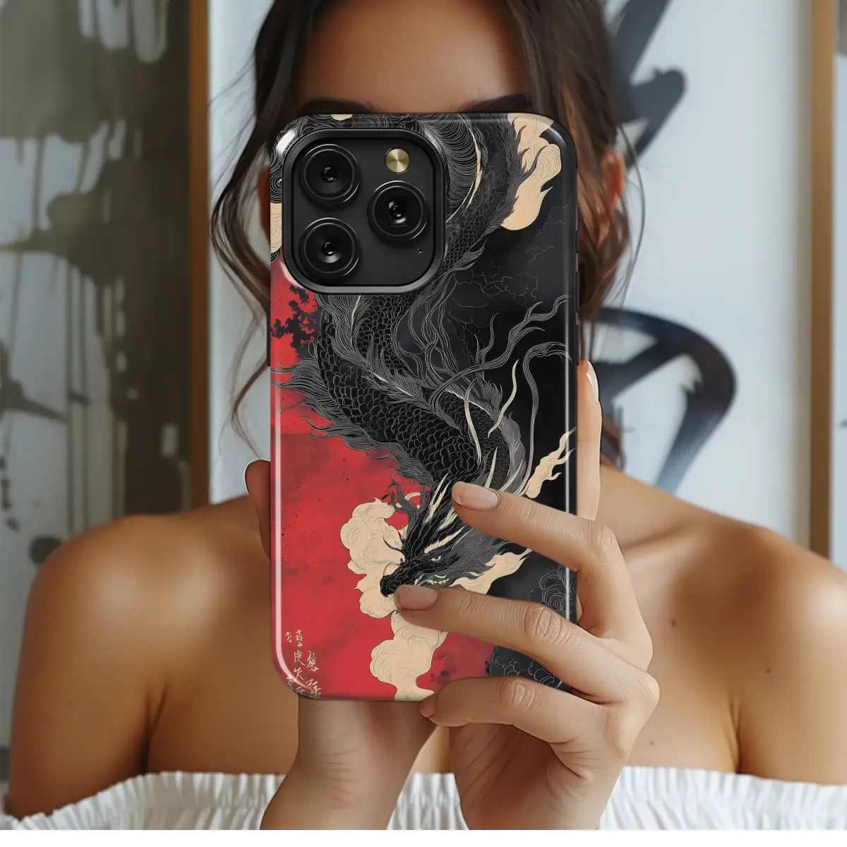 Unleash your inner strength with this captivating design featuring a majestic dragon, rendered in exquisite detail against a fiery red and black backdrop. The intricate linework and dramatic composition evoke a sense of power and mystique, making it a statement piece for those who appreciate bold artistry and ancient symbolism. This striking graphic is perfect for adding a touch of the mythical and mysterious to your everyday style. The dragon's scales are meticulously crafted, while the swirling clouds add depth and movement to the overall design. This high-quality print ensures vibrant colors and long-lasting durability, transforming your accessory into a wearable work of art. Its unique blend of traditional Japanese aesthetics and modern graphic design makes it a truly exceptional choice, showcasing your individual style with captivating flair. Express your fierce personality and unique taste with this powerful symbol of strength and grace. Elevate your look with a design that commands attention and whispers stories of legends. This captivating image offers a stunning visual narrative, instantly transforming any accessory into a conversation starter.