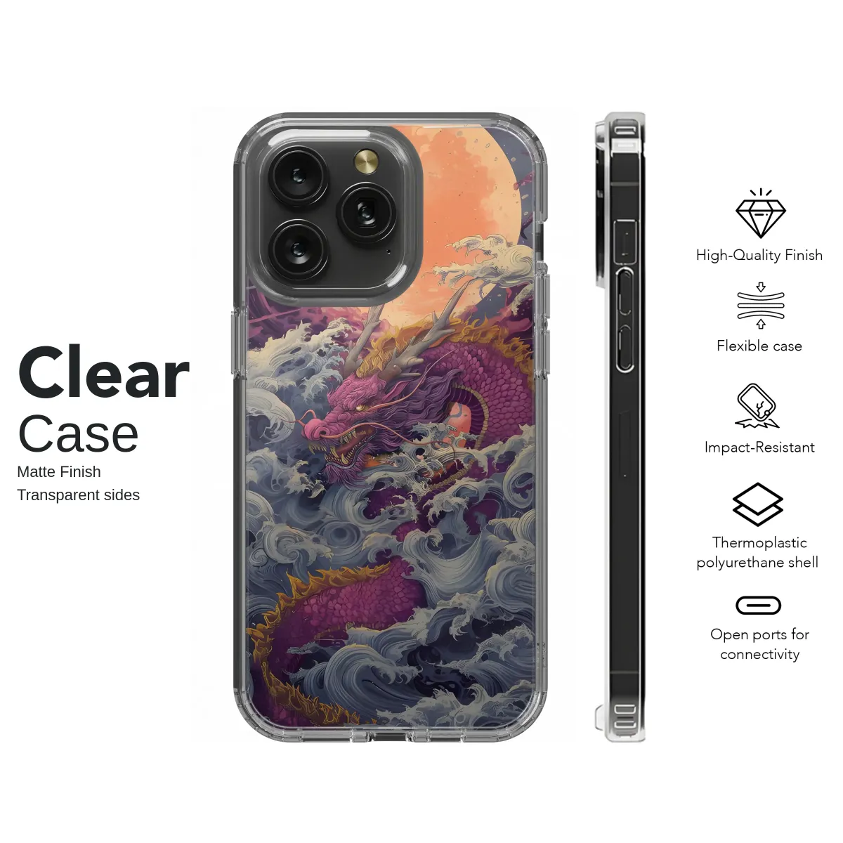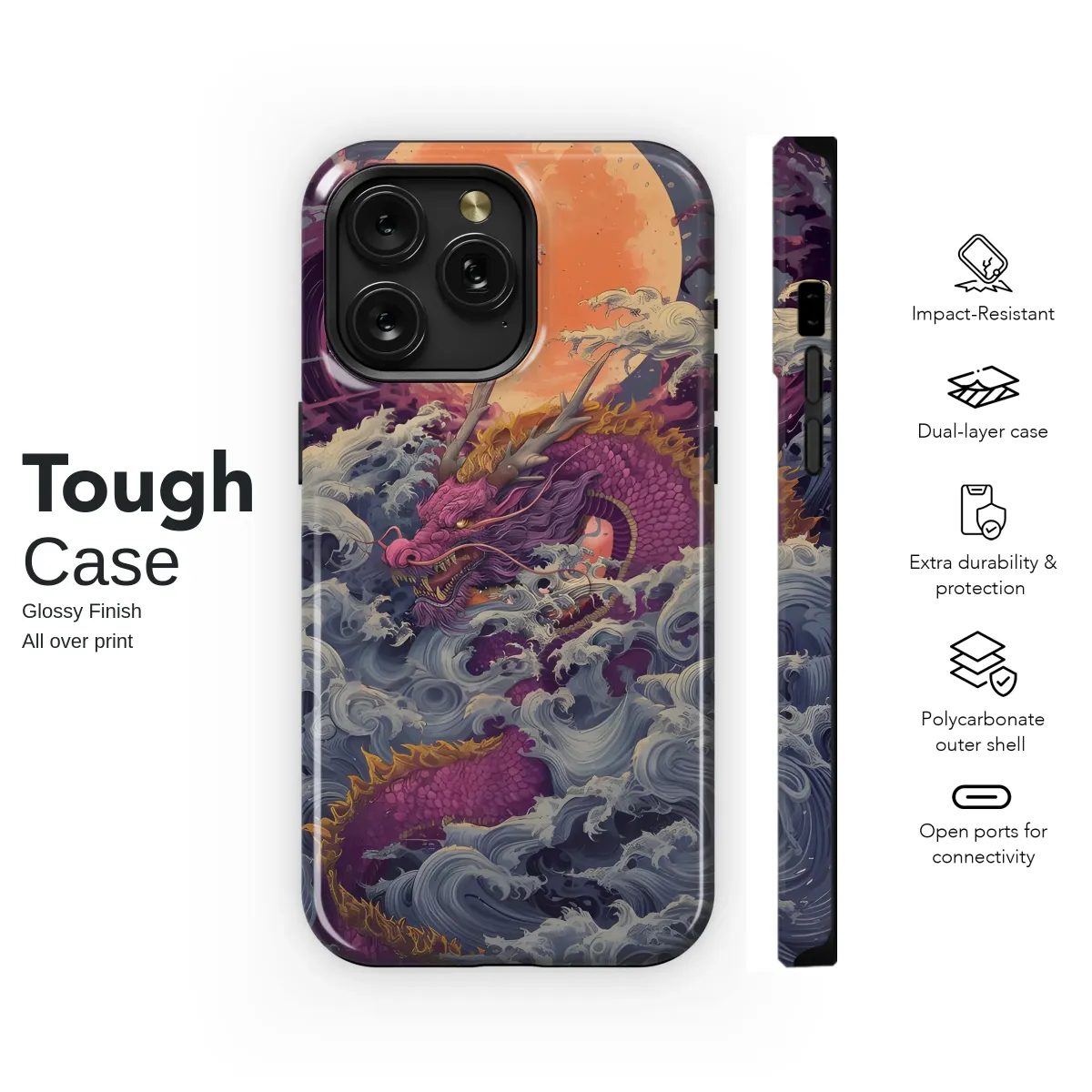 Unleash your inner mythical beast with this breathtaking design, featuring a majestic dragon amidst a tempestuous sea under a blood-orange moon. The intricate details of the dragon's scales, the swirling power of the waves, and the dramatic celestial backdrop create a captivating and powerful image. This striking artwork is a testament to the beauty of nature's raw power and the legendary grace of mythical creatures. Perfect for those who appreciate bold statements and unique, eye-catching aesthetics, this design transforms your everyday item into a work of art. Its vibrant colors and detailed artistry make it a head-turner, guaranteed to start conversations and reflect your individual style. The high-quality print ensures a long-lasting and vibrant image that will withstand daily wear and tear. Show the world your fierce spirit with this captivating piece, showcasing a blend of ancient symbolism and modern design. Bring the legend to life and make a bold fashion statement. Dragon, mythical creature, ocean waves, moon, art, design, unique, vibrant, bold, statement piece, high-quality print, Japanese art, Asian art, mystical.