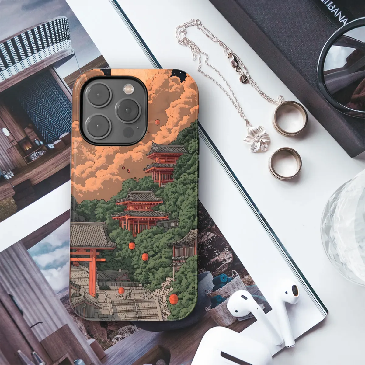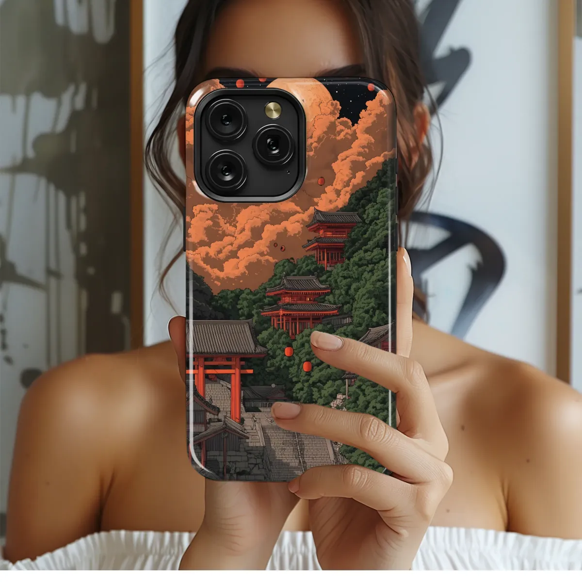 Elevate your style with this breathtaking design, featuring a serene landscape of ancient temples nestled amongst lush greenery under a captivating, crimson moon. Intricate details and a warm, earthy color palette create a captivating scene, perfect for those who appreciate artistry and tranquility. The floating lanterns add a touch of magic, transforming this piece into a mesmerizing visual journey. This high-quality print is vibrant and long-lasting, ensuring your device remains a stunning reflection of your personal aesthetic. This unique artwork will effortlessly transform your everyday item into a statement piece, making it a conversation starter wherever you go. Showcase your individuality with this captivating design, a true reflection of your refined taste and appreciation for the beautiful. The captivating artwork is printed with precision to ensure vivid colors and a durable finish. Perfect as a gift or a personal treat, this design offers a harmonious blend of Eastern aesthetics and contemporary style, guaranteeing an unforgettable visual experience.