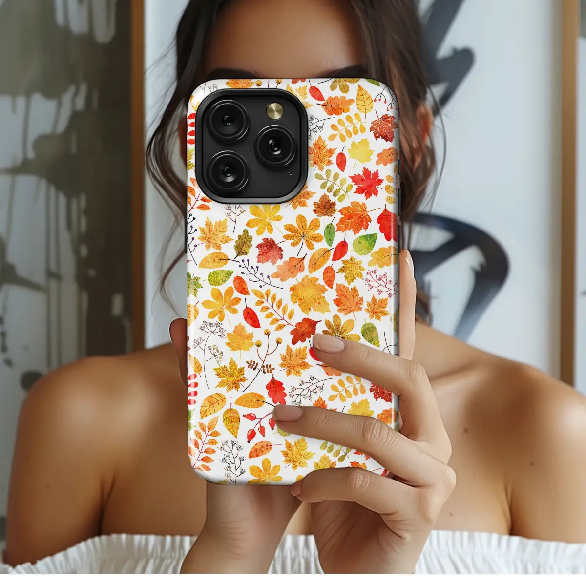 Embrace the heart of the cozy season with a design that captures the magic of a forest floor in full autumnal glory. This enchanting botanical illustration is a vibrant tapestry of nature's finest hour, a beautiful cascade of falling leaves in every shade of harvest gold, fiery crimson, and rustic orange. Delicate watercolor textures bring each maple, oak, and chestnut leaf to life, making them appear to dance and twirl against a crisp, clean backdrop, creating a stunning autumn aesthetic. Dotted amongst the foliage are tiny sprigs of wild rose hips and whimsical seed heads, adding a touch of rustic charm and intricate detail that invites a closer look. It’s more than just a pattern; it’s the feeling of a crisp afternoon walk, the warm glow of the golden hour filtering through the trees, and the gentle whisper of autumn in the air. Let this stunning artwork adorn your favorite daily essential, turning it into a statement piece that celebrates the changing seasons. Carry a piece of this whimsical fall design with you, a constant reminder of nature's breathtaking artistry. This unique piece makes a thoughtful gift for nature lovers and anyone who adores cottagecore vibes, botanical illustrations, and the warm, comforting embrace of fall.