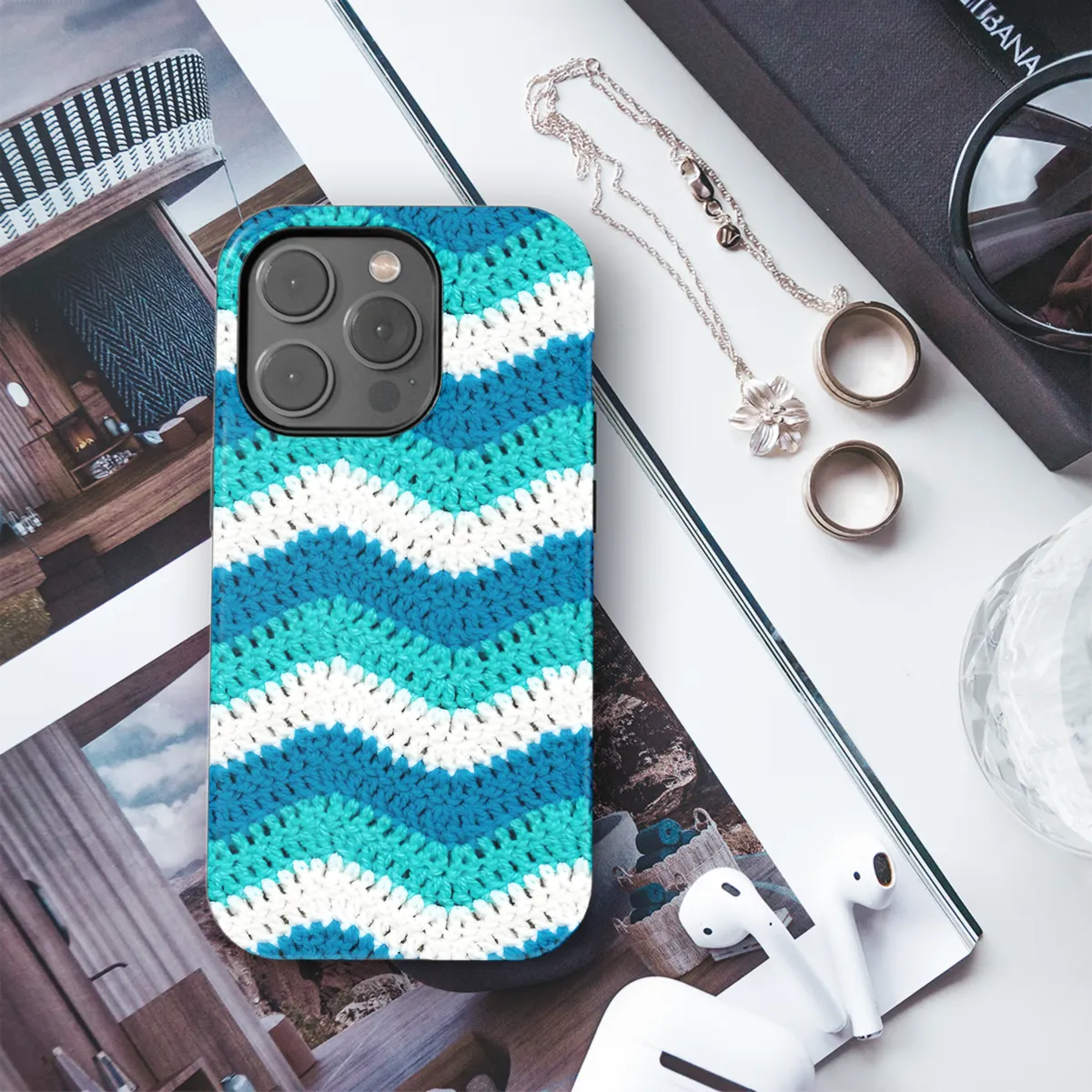 Experience the cozy charm of the Crochet Waves Knitted Phone Case, an exquisite blend of comfort and style. Handcrafted with intricate crochet patterns, this case transforms your phone into a captivating accessory. Its soft, knitted fabric provides a gentle touch and protects your device from bumps and scratches. Available for various iPhone, Samsung, and Pixel models, this case is a perfect fit for those who value both protection and a touch of warmth.
