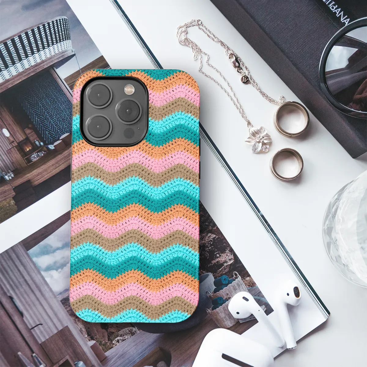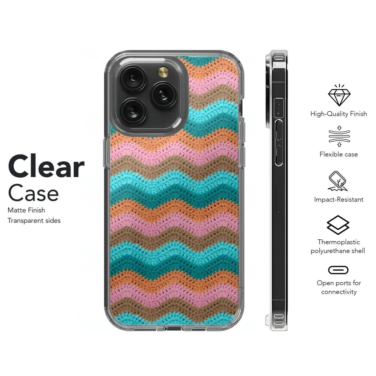 Protect your phone in style with our unique, handmade crochet zigzag yarn phone case. Crafted with intricate detail, this case not only safeguards your device but also adds a touch of bohemian charm. The soft and cozy texture provides a comfortable grip, while the durable construction ensures optimal protection against bumps and scratches. Compatible with iPhone, Samsung, and Pixel, this case is the perfect accessory for any phone enthusiast. Its snug fit ensures a secure hold, and the precise cutouts provide easy access to all ports and buttons. Choose from a vibrant array of colors to match your personality or style. Not only functional, this phone case is also a fashion statement. Its intricate crochet design adds a touch of elegance and individuality to your everyday look. Handcrafted with love and attention to detail, this case is a true work of art that will be treasured for years to come.