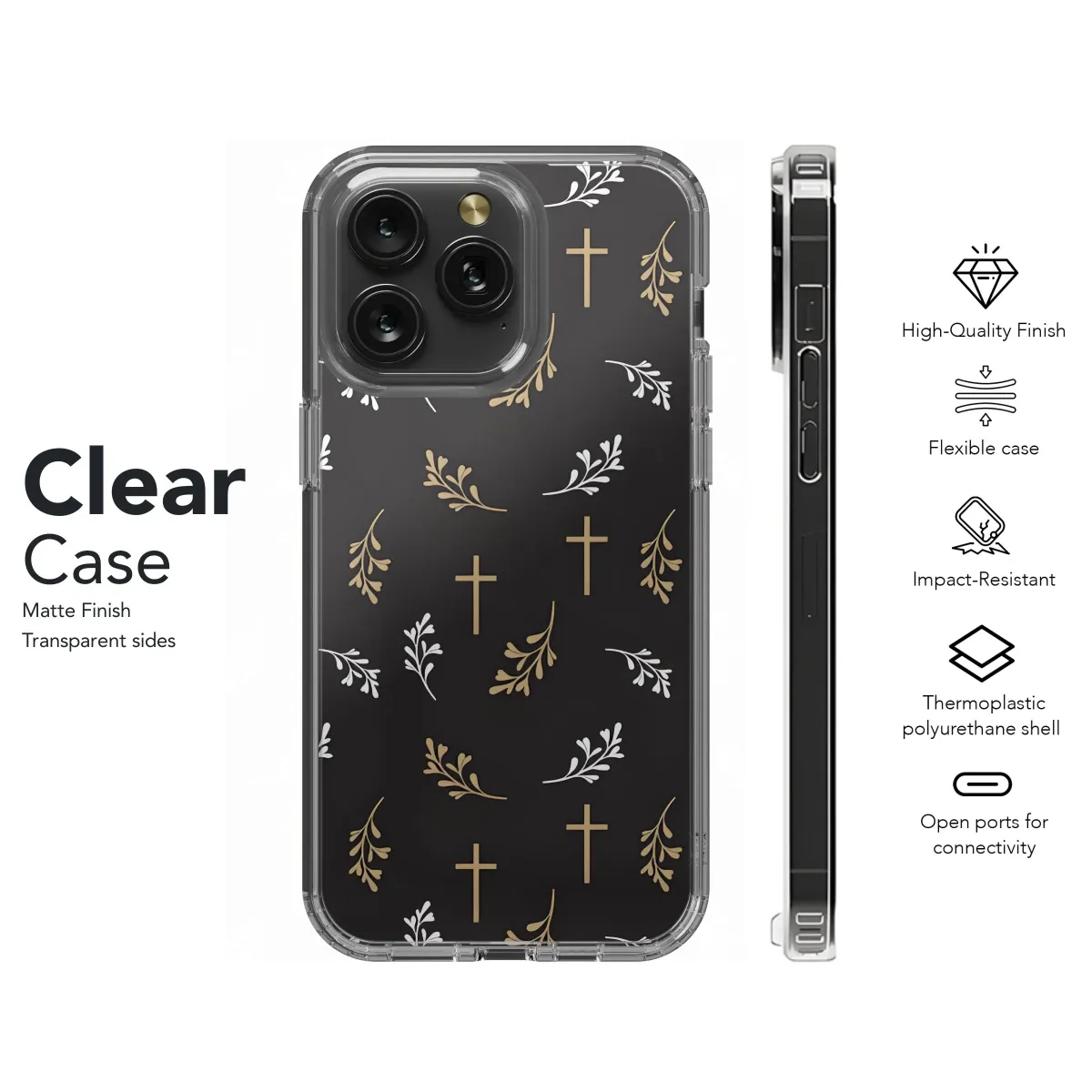 Embrace your faith with this beautifully designed accessory, perfect for everyday inspiration. Featuring a delicate pattern of golden crosses and graceful olive branches against a sophisticated black backdrop, this item offers a subtle yet profound expression of your beliefs. The contrasting colors create a visually appealing aesthetic, making it a stylish addition to your collection. Ideal for those seeking Christian gifts, religious accessories, or simply a reminder of their spirituality, this design is both elegant and meaningful. Perfect for confirmation gifts, baptism presents, or Easter celebrations. Give the gift of faith with this beautiful and durable case, an ideal way to keep your tech safe while showcasing your devotion. Shop now and add a touch of grace to your everyday life with this distinctive and meaningful design.
