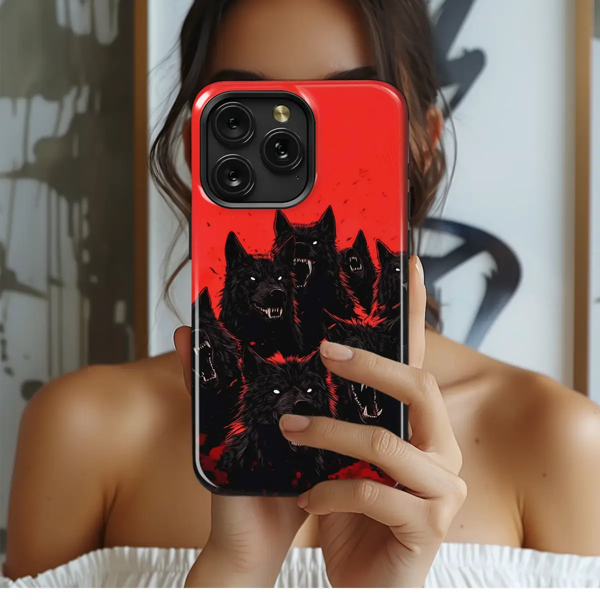 Unleash the primal power you hold within and carry a symbol of untamed strength with this breathtaking dark fantasy artwork. Let the wild energy of the wolf pack become your daily armor, a fierce statement piece that speaks without a word. Against a stark, blood-red sky crackling with raw intensity, a legion of shadow-black wolves emerges from the darkness, their eyes glowing with an ethereal white light. Every detail, from the crimson highlights catching in their wild fur to the glint of their snarling fangs, is a testament to raw power and unyielding spirit. This isn't just an accessory; it's a declaration of your inner alpha, a totem of fierce loyalty and the protective nature of the pack. Wrap your most essential daily companion in this stunning piece of gothic art, perfect for anyone who resonates with an alternative aesthetic, Viking lore, or the powerful call of the wild. It’s an unforgettable gift for the lone wolf or pack leader in your life, transforming their everyday gadget into a piece of mythological art that is both beautiful and formidable. Let this pack guard your connection to the world, making a bold, untamed statement wherever you roam.