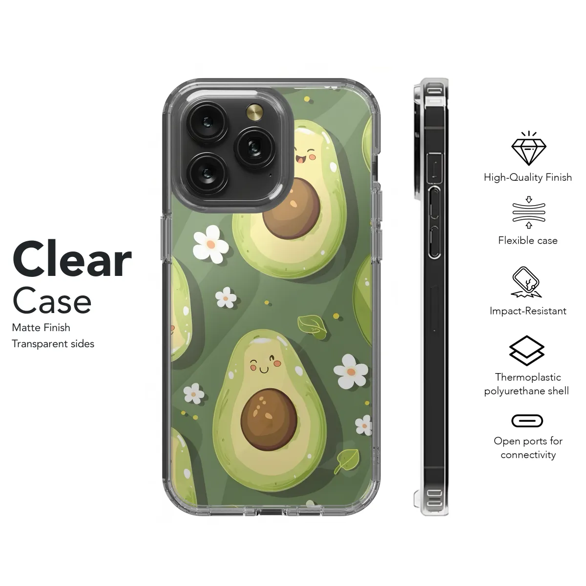 Embrace the adorable world of avocados with this charming phone case! Featuring a captivating pattern of cute avocados, this case adds a touch of whimsy and delight to your device. Available for iPhone, Samsung, and Pixel 4214, this case ensures compatibility with a wide range of devices. Shield your phone from bumps, scratches, and drops while expressing your love for all things avocado.