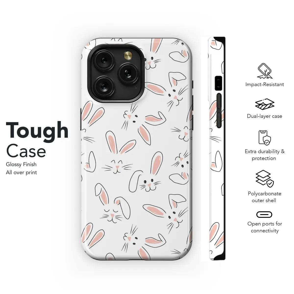 Accessorize your phone with the cuteness overload of our adorable Bunny Faces Phone Case! Protects your precious device while adding a touch of whimsy to your everyday carry. Available for iPhone, Samsung, and Pixel, this case is compatible with your favorite smartphone models (3997). Featuring a menagerie of charming bunny faces, this case will bring a smile to your face and a 'aww' to your friends. Its durable construction ensures both style and protection.