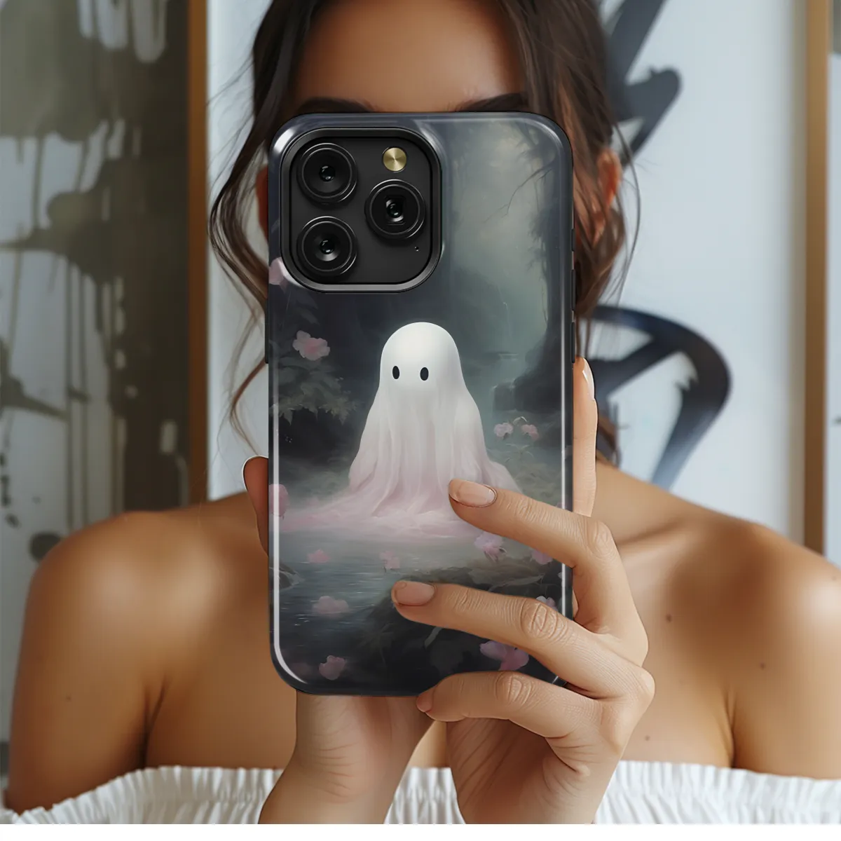 Calling all Halloween enthusiasts! Our adorable "Cute Ghost in Forest" phone case is here to scare away boredom and add a touch of spooky charm to your device. Crafted with high-quality materials, this case offers excellent protection from bumps, scratches, and the occasional ghostly mischief. Featuring a whimsical illustration of a friendly ghost floating through a serene forest, our phone case adds a splash of Halloween spirit to any occasion. Whether you're navigating the daily grind or attending a costume party, this case will make your phone a standout. Compatible with a wide range of iPhone, Samsung, and Pixel models, our "Cute Ghost in Forest" phone case is the perfect accessory for those who love the spooky season and want to show off their unique style. Order now and let this enchanting case be your trusted companion for all your digital adventures!