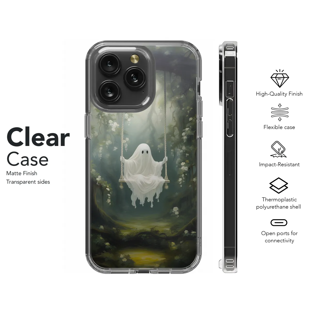 Show off your quirky side with this adorable phone case featuring a charming ghost swinging amidst celestial stars. Available for various iPhone, Samsung, and Pixel models, this case will protect your device while adding a touch of ethereal charm to your daily essentials.