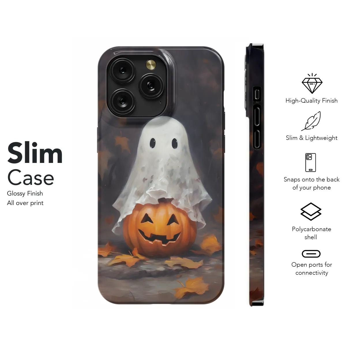 Haunt your phone with cuteness with this adorable ghost-themed phone case! Featuring a spooky yet adorable ghost clutching a pumpkin, this case will add a touch of Halloween spirit to your tech. Choose from a wide range of models to fit your iPhone, Samsung, or Pixel device perfectly. Protect your phone in style with this unique and enchanting case today!