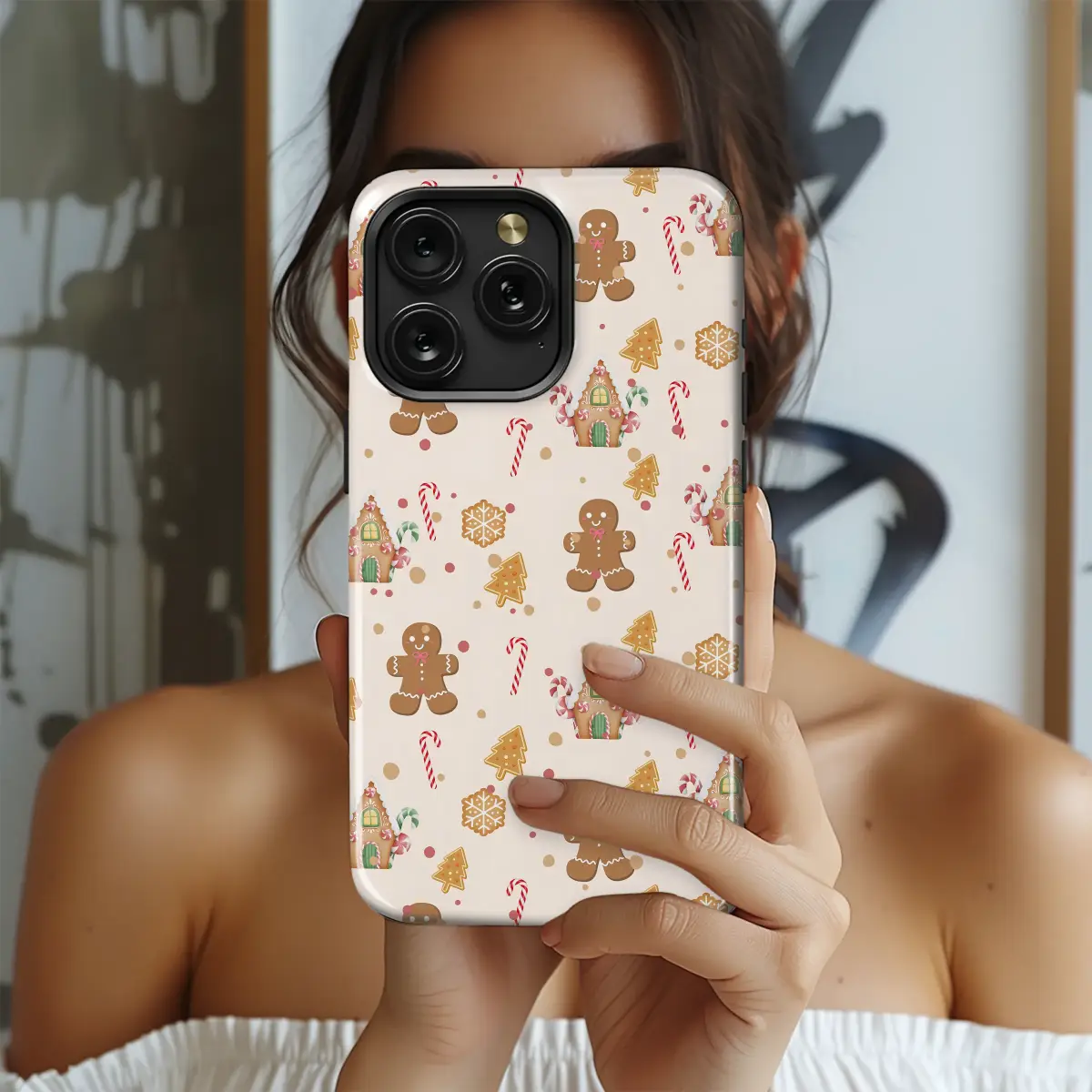 Embrace the holiday season with this charming and whimsical gingerbread pattern. This festive design features adorable gingerbread men, sweet candy houses, classic candy canes, and delightful snowflake cookies, all set against a soft, creamy background. The warm, cheerful colors evoke a cozy feeling, perfect for anyone who loves Christmas sweets and festive treats.