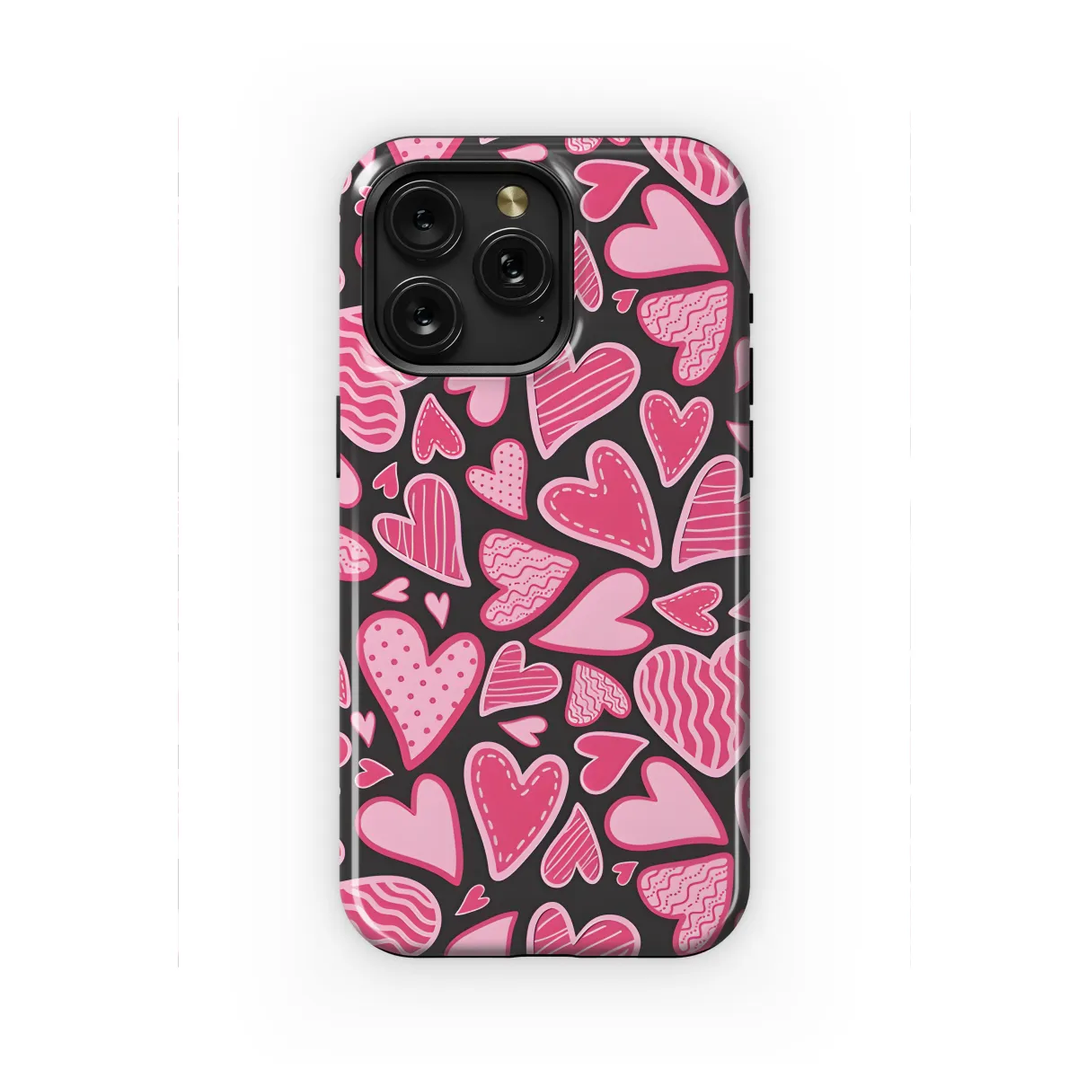 Showcase your style with this adorable Hearts Pattern Phone Case! Designed to fit snugly around your iPhone, Samsung, or Pixel, it's the perfect way to protect your device while adding a touch of charm. The vibrant heart pattern is eye-catching and playful, instantly elevating your everyday look. Whether you're sending messages, snapping pictures, or scrolling through your favorite apps, this case will keep your phone looking as good as new. Get ready to steal hearts every time you take out your phone!