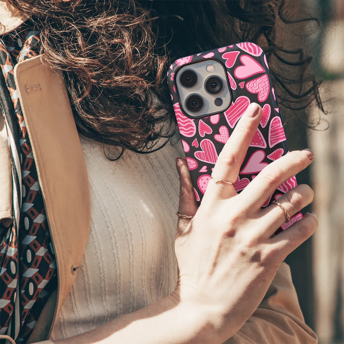 Showcase your style with this adorable Hearts Pattern Phone Case! Designed to fit snugly around your iPhone, Samsung, or Pixel, it's the perfect way to protect your device while adding a touch of charm. The vibrant heart pattern is eye-catching and playful, instantly elevating your everyday look. Whether you're sending messages, snapping pictures, or scrolling through your favorite apps, this case will keep your phone looking as good as new. Get ready to steal hearts every time you take out your phone!