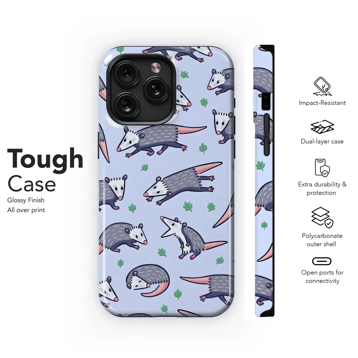 * Show off your love for the quirky and adorable opossum with this unique phone case. * The cute opossum pattern adds a touch of whimsy to your phone while protecting it from bumps and scratches. * Soft TPU material absorbs shock and provides a comfortable grip. * Precise cutouts ensure easy access to all ports, buttons, and functions. * Available for a wide range of iPhone, Samsung, and Pixel models.