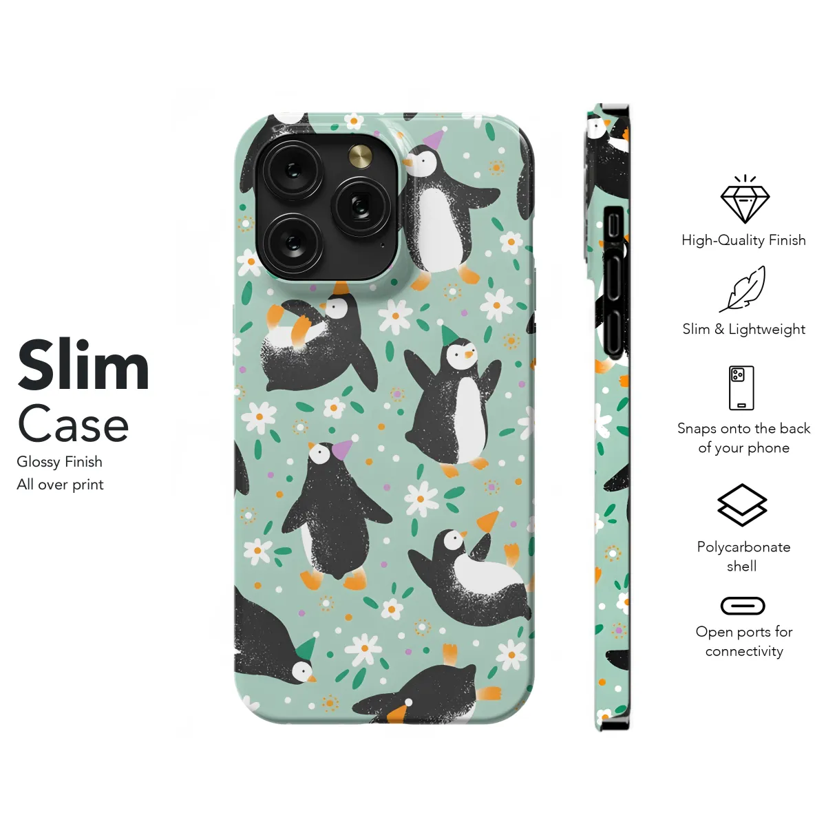 This adorable penguin phone case is the perfect way to add some personality to your device. Made of durable materials, it will protect your phone from bumps and scratches. The cute penguin design is sure to bring a smile to your face every time you use your phone.