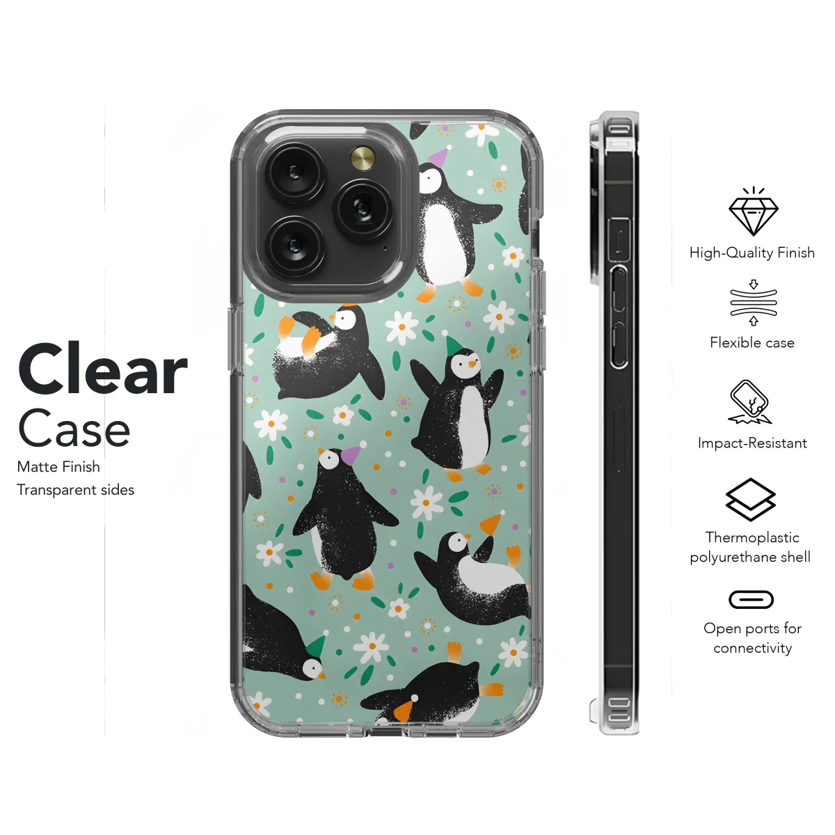 Introducing our adorable Penguin Seamless Pattern Phone Case, the perfect accessory to protect your smartphone with style! This case features a charming all-over penguin print, adding a touch of whimsy to your daily routine. Crafted from durable materials, this case provides excellent protection from scratches, dents, and drops. Its snug fit ensures a secure grip, while the precise cutouts allow easy access to all buttons, ports, and the camera. Whether you're a penguin enthusiast or simply appreciate cute and cheerful designs, this case is the perfect choice for you. It's available for a wide range of iPhone, Samsung, and Pixel models, so you can find the perfect fit for your device. Order your Cute Penguin Seamless Pattern Phone Case today and add some playful flair to your smartphone!