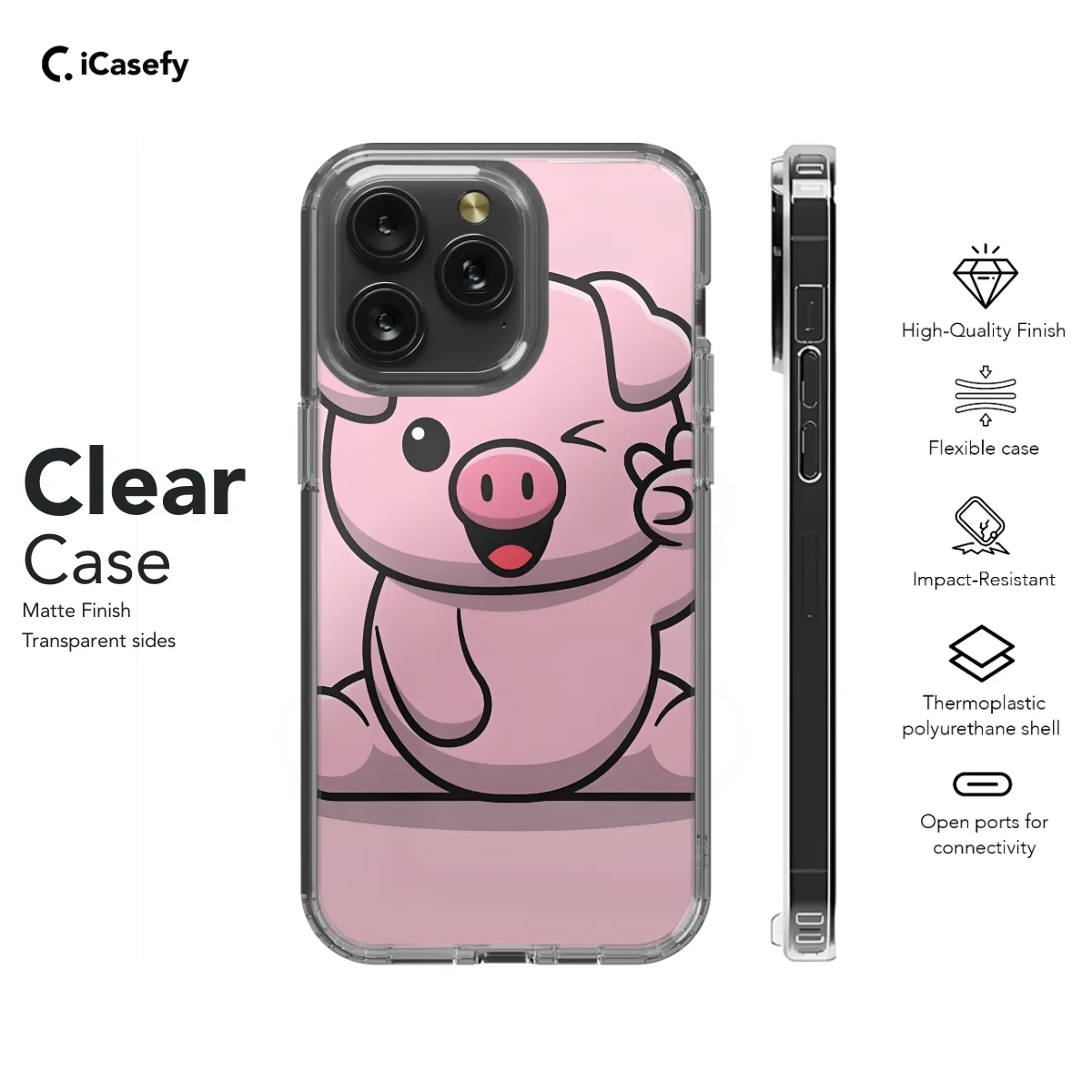Adorn your phone with the irresistible charm of this Cute Pig Phone Case! Perfect for any pig lover, this case will make your device stand out with its adorable design. Designed to fit various iPhone, Samsung, and Pixel models, this case ensures a snug fit for your precious device. Its durable construction safeguards your phone from scratches, bumps, and accidental drops. Express your love for all things pig and add a touch of whimsy to your everyday carry with this Cute Pig Phone Case. Order yours today and let the cuteness overload begin!