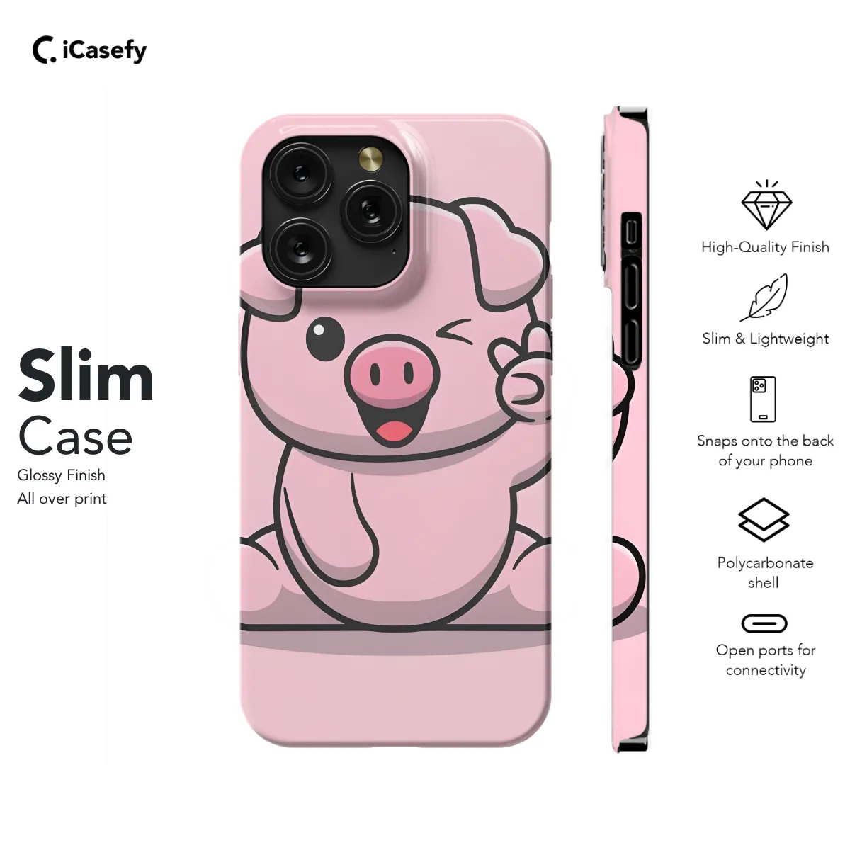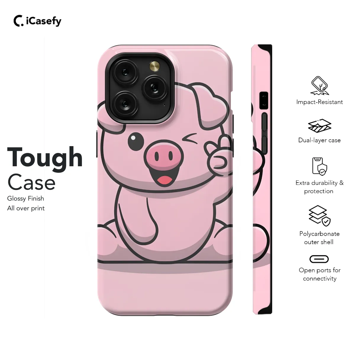 Adorn your phone with the irresistible charm of this Cute Pig Phone Case! Perfect for any pig lover, this case will make your device stand out with its adorable design. Designed to fit various iPhone, Samsung, and Pixel models, this case ensures a snug fit for your precious device. Its durable construction safeguards your phone from scratches, bumps, and accidental drops. Express your love for all things pig and add a touch of whimsy to your everyday carry with this Cute Pig Phone Case. Order yours today and let the cuteness overload begin!