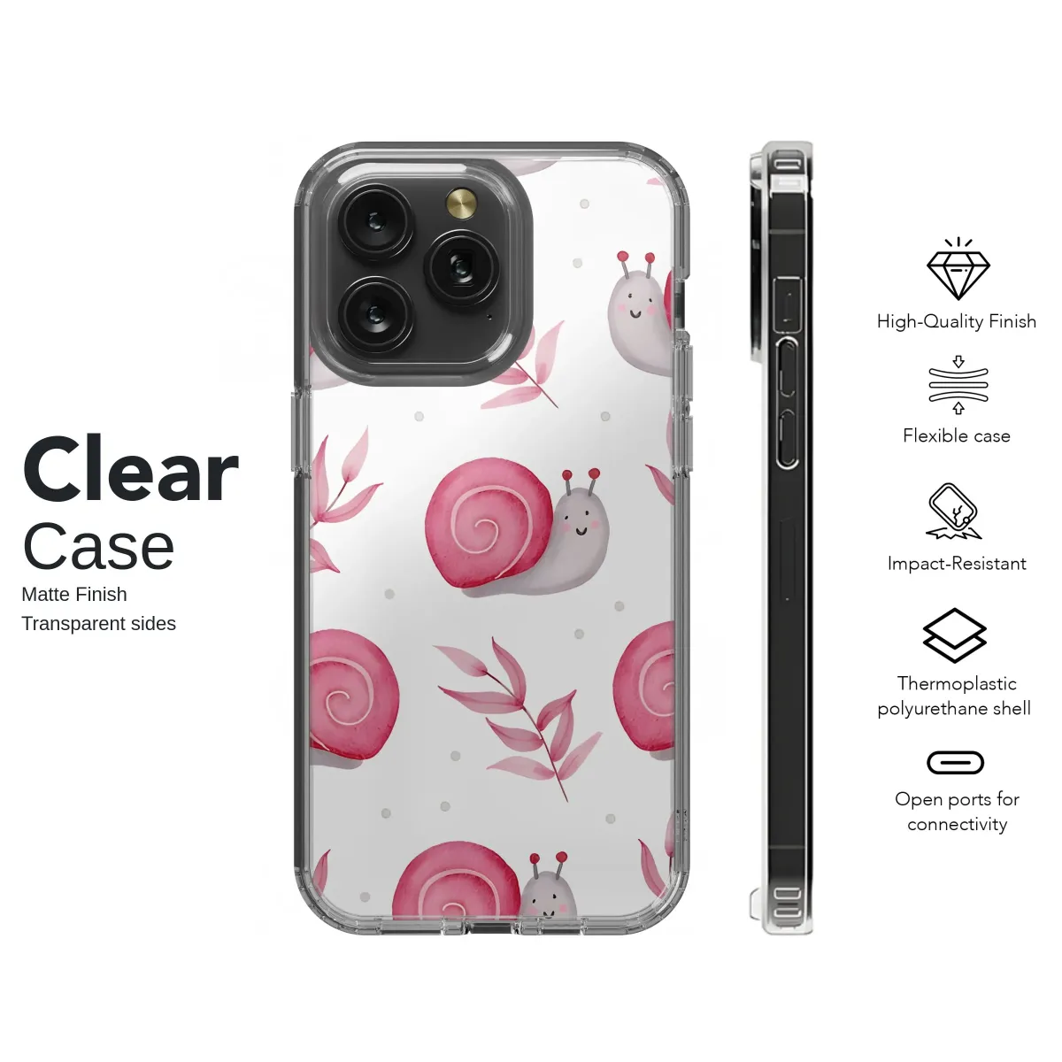 Discover this utterly delightful pattern featuring charming creatures from the garden! This whimsical nature print showcases adorable snails, each sporting a vibrant pink spiral shell, their gentle grey bodies peeking out with sweet, smiling faces. Interspersed among these delightful mollusks are delicate botanical elements – soft pink watercolor leaves and branches that add an elegant, ethereal touch to the overall design. Set against a clean white backdrop accented with subtle grey dots, the repeating motif creates a sense of simple beauty and playful enchantment. Perfect for adding a touch of personality and aesthetic appeal to your chosen item, this charming pattern is printed with exquisite detail, bringing this sweet garden scene to life. It's more than just a design; it's a statement piece, a tiny portable art gallery, reflecting your love for nature, whimsical art, and all things cute. Whether you're treating yourself or seeking a unique gift for someone special who appreciates charming animal patterns and botanical prints, this is a beautiful way to personalize an everyday essential with a delightful touch of the outdoors and soft, inviting colors. This unique accessory print offers style and individuality, ensuring your item stands out with its adorable creatures and charming composition, making it a truly unique and treasured piece.
