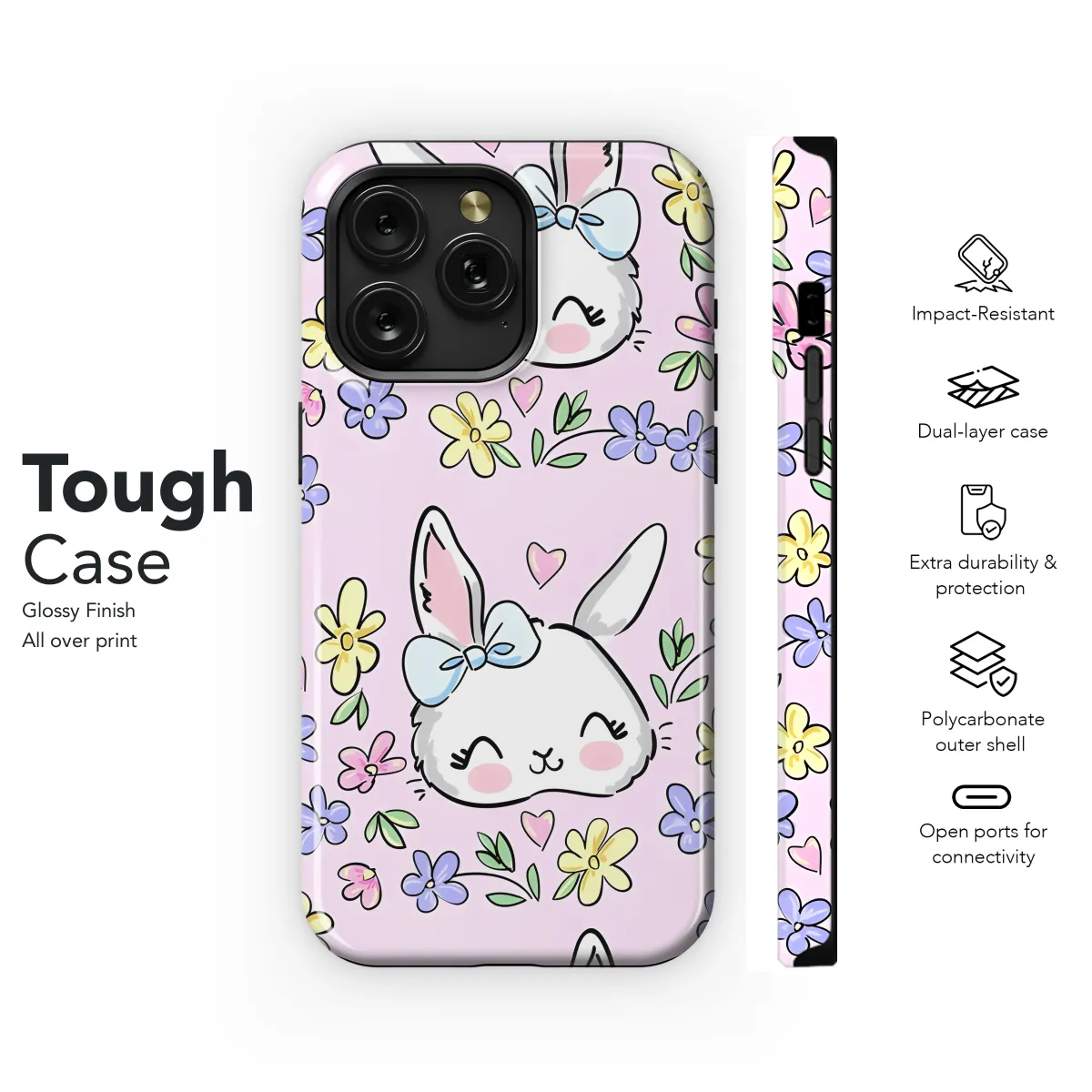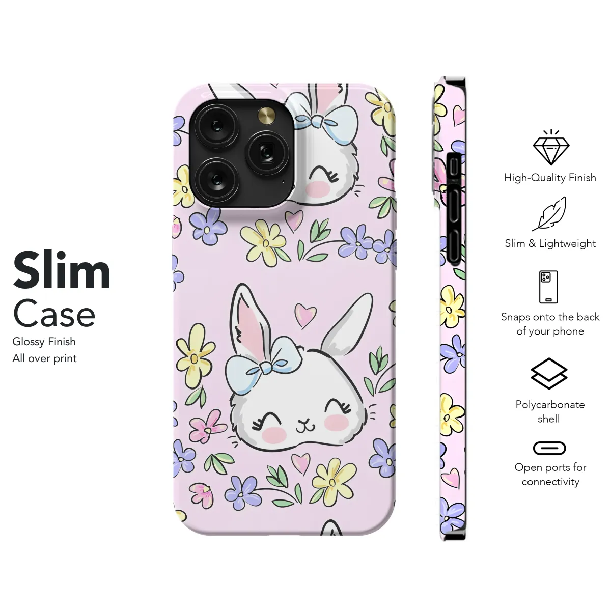 This adorable phone case featuring a cute rabbit adorned with flowers is the perfect way to add a touch of whimsy to your device. Whether you have an iPhone, Samsung, or Pixel, this cover will keep your phone safe while making it look stylish. The durable material protects against scratches and bumps, while the soft lining keeps your phone cozy. With its eye-catching design and protective features, this phone case is a must-have for any animal lover.