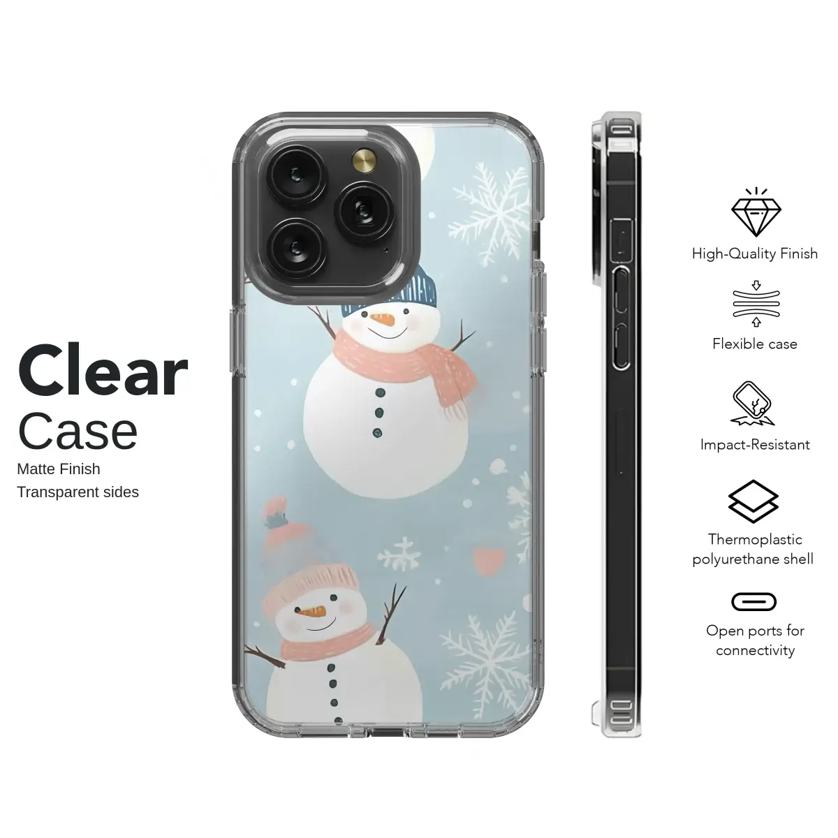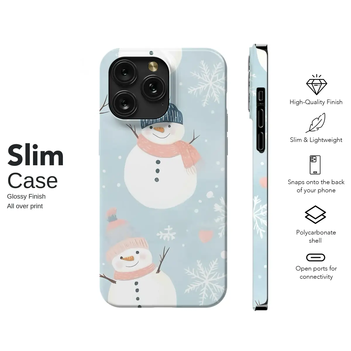Embrace the cozy season with this charming watercolor snowman phone case. A perfect winter accessory, this cover features a delightful pattern of happy snowmen in colorful hats and scarves, set against a soft blue background with falling snowflakes and tiny hearts. Inspired by the joy of a snowy day, this whimsical design adds a touch of festive cheer to your daily routine while keeping your phone safe. It's a wonderful way to celebrate the holiday season. Key Features: * Durable & Protective: Made from a high-quality, tough material to guard against scratches and minor bumps. * Vibrant Print: The delightful winter scene is rendered in rich, fade-resistant colors. * Slim Fit: A lightweight design that won't add bulk, with precise cutouts for easy access to all buttons and ports. * Broad Compatibility: Available for most popular iPhone, Samsung Galaxy, and Google Pixel models. This case makes an excellent Christmas gift, stocking stuffer, or a festive treat for yourself.