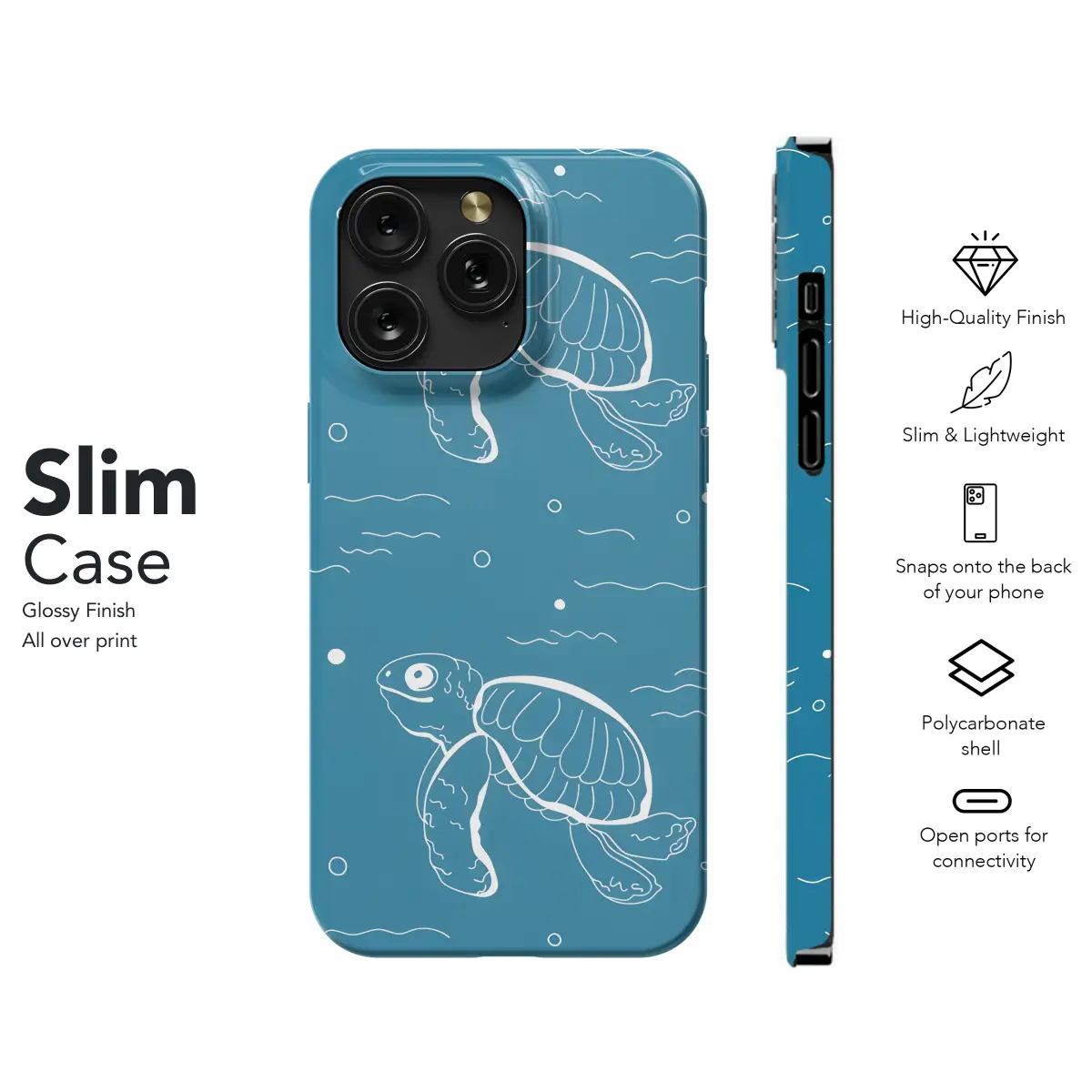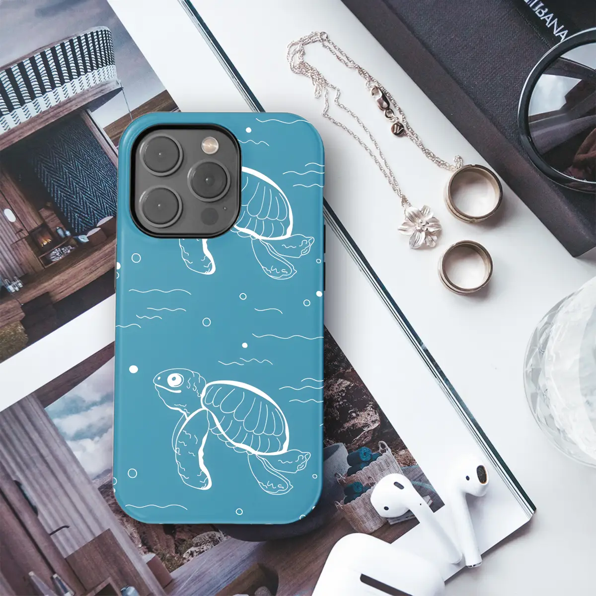 Immerse yourself in the captivating charm of the ocean with this alluring phone case. Its vibrant print adorns your device with adorable turtles swimming amidst enchanting wavy lines, evoking a serene marine ambiance. Each brushstroke dances across the case, creating an ethereal underwater tapestry that will turn heads. Whether you're exploring the depths of the digital realm or capturing life's precious moments, this ocean-inspired masterpiece will keep your phone protected in style.