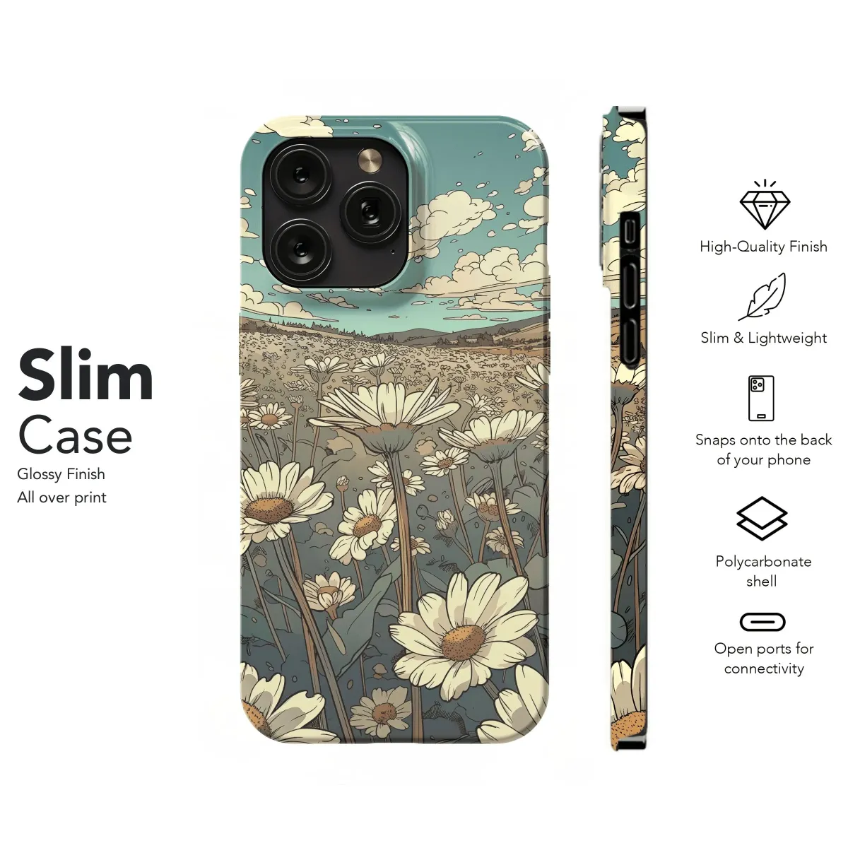 Escape to a serene daisy field with this charming phone case. Protect your iPhone, Samsung, or Pixel device with a touch of floral whimsy. Durable and beautiful, it's a dream for your phone.